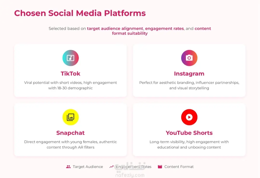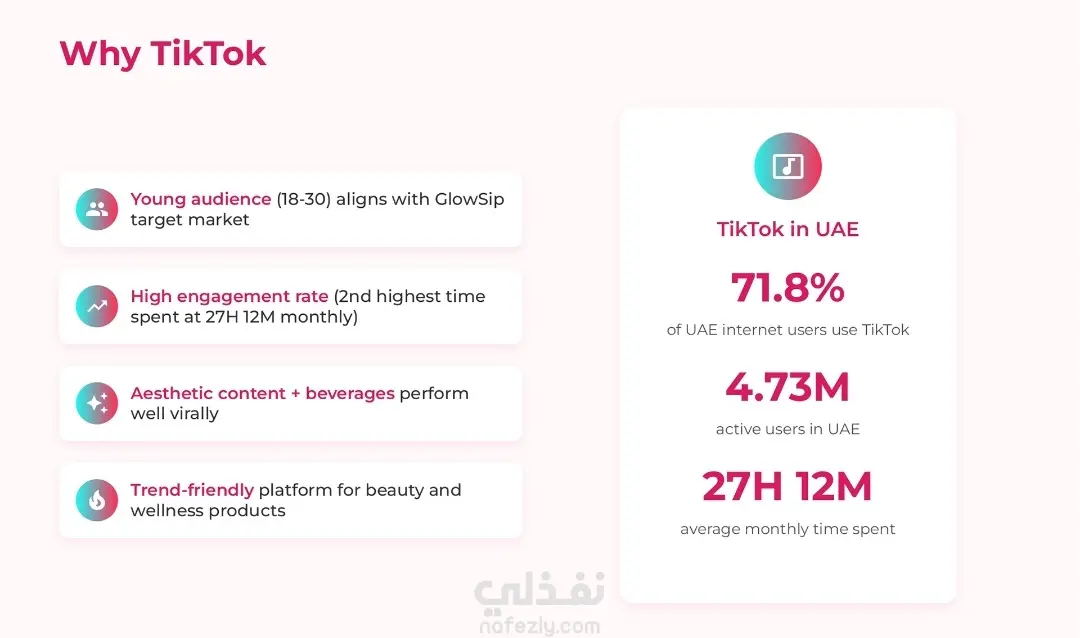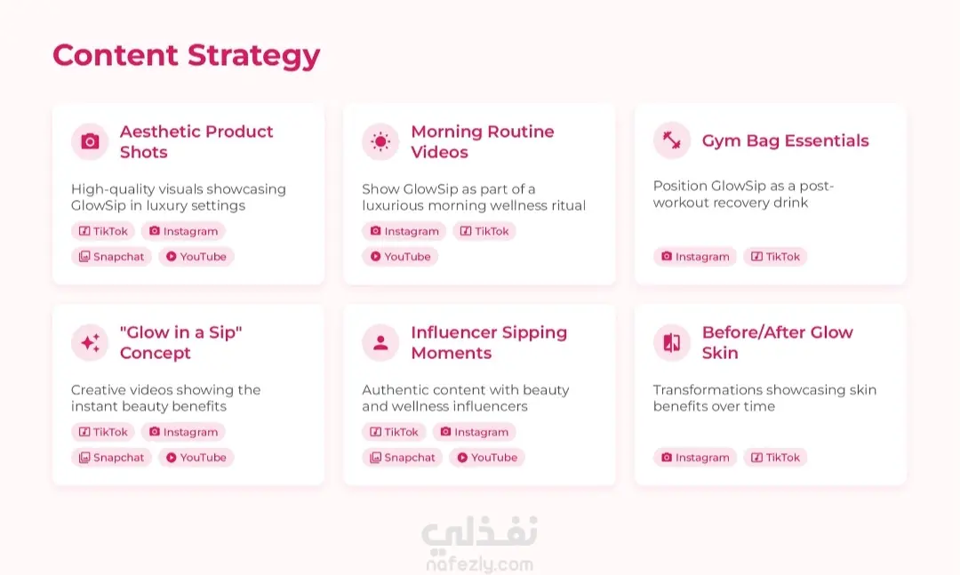 قمت في هذا المشروع بإعداد استراتيجية تسويق رقمي متكاملة (Social Media Marketing Strategy) لعلامة تجارية مفترضة لمشروب كولاجين فوار (GlowSip) يستهدف سوق الإمارات العربية المتحدة. تضمن العمل الخطوات التالية: * تحليل المنتج: دراسة نقاط البيع الفريدة (USP) للمنتج باعتباره مشروب تجميلي فاخر خالي من السكر. * دراسة الجمهور المستهدف: تحديد الشريحة المستهدفة بدقة (الإناث من 18-35 سنة في الإمارات، المهتمات بالجمال واللياقة) وتحليل سلوكهم الشرائي. * تحليل السوق والمنصات: تقديم إحصائيات دقيقة حول استخدام وسائل التواصل الاجتماعي في الإمارات، وتحديد المنصات الأنسب للمنتج (TikTok, Instagram, Snapchat, YouTube) بناءً على الأرقام ونسب التفاعل. * استراتيجية المحتوى: تطوير أفكار إبداعية للمحتوى تناسب كل منصة، مثل فيديوهات التحول (Before/After)، روتين الصباح، ومحتوى المؤثرين (UGC). * الخطة التنفيذية: توزيع الأدوار على المنصات (TikTok للانتشار الفيروسي، Instagram لبناء العلامة التجارية، Snapchat للتفاعل المباشر). يهدف هذا المشروع إلى إبراز مهاراتي في البحث التسويقي، تحليل البيانات، وبناء خطط استراتيجية قابلة للتنفيذ تحقق أهداف العلامة التجارية."