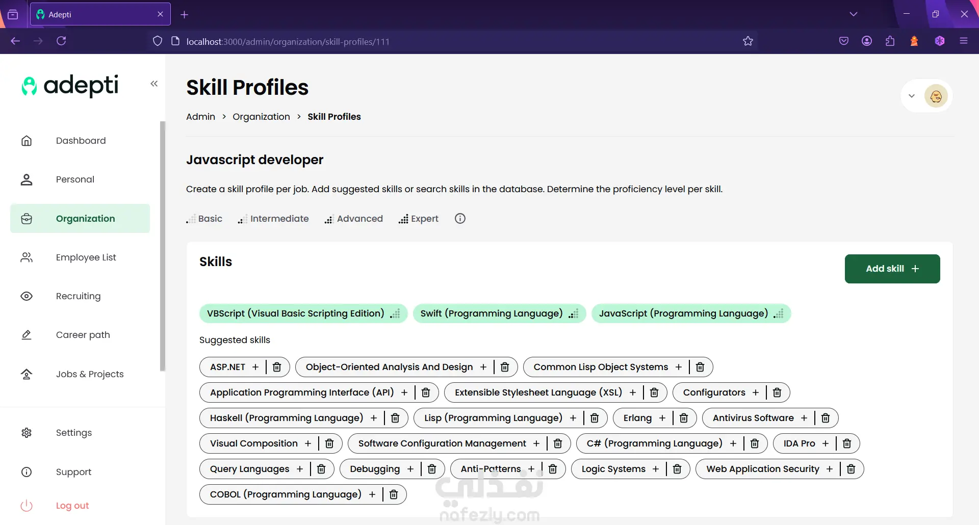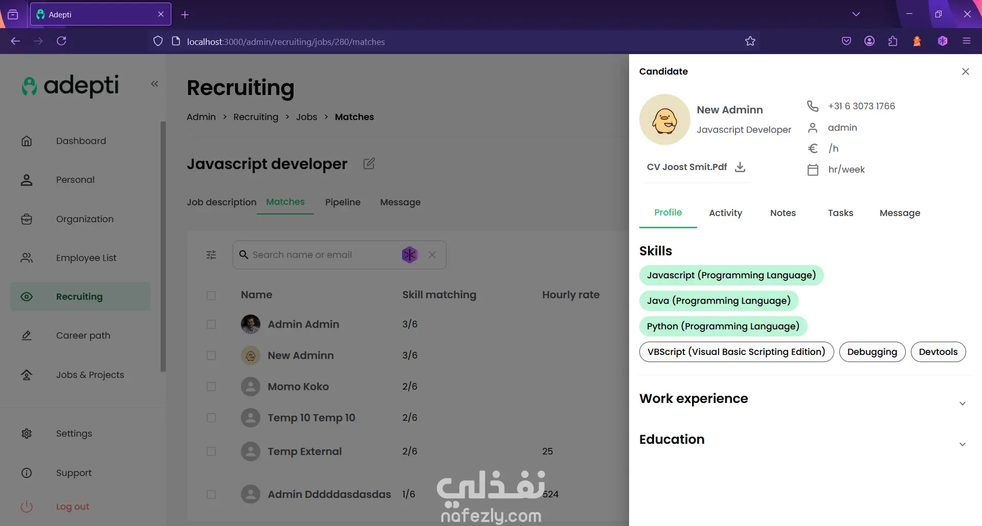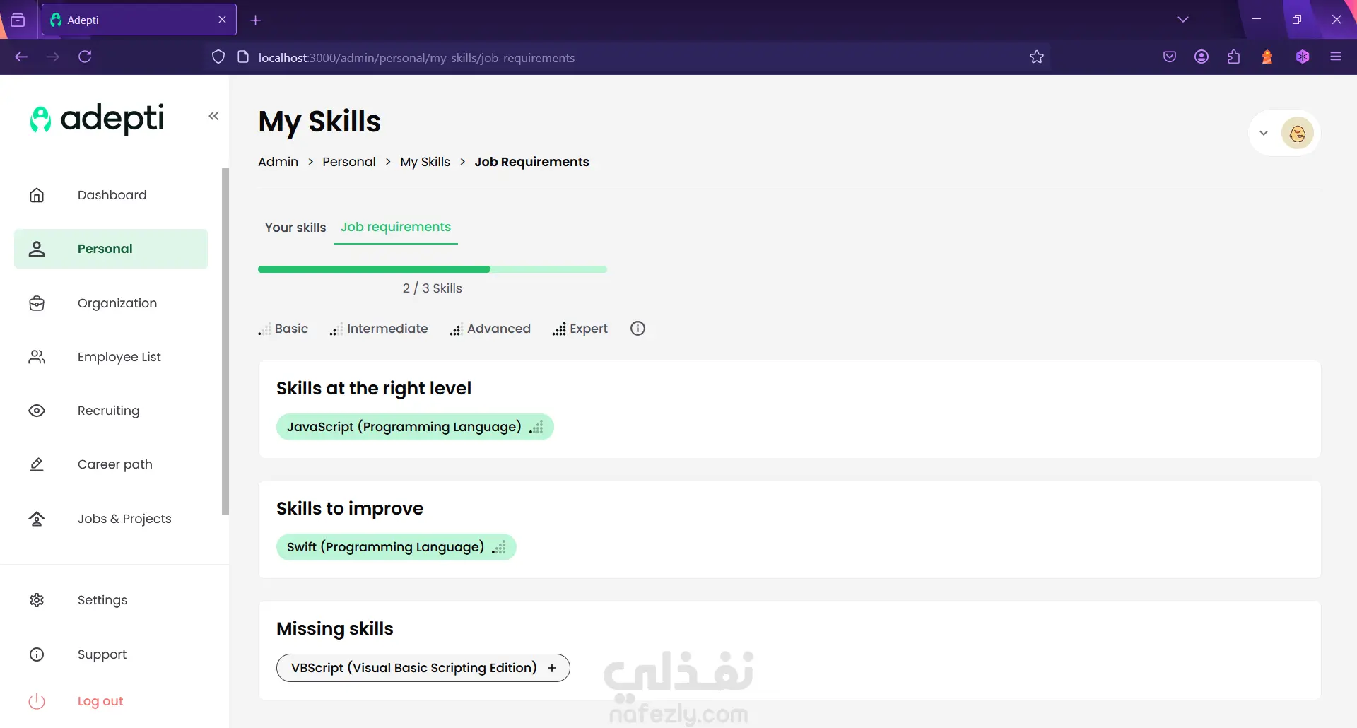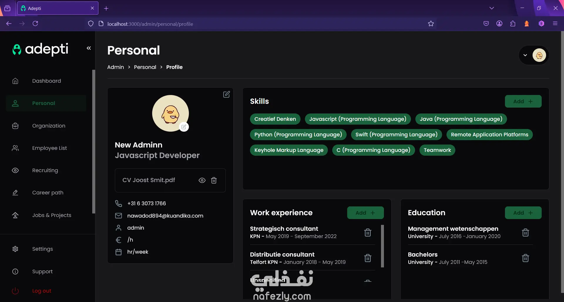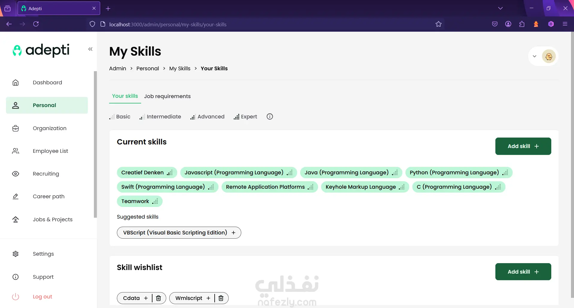 Adepti is an internal talent marketplace that companies can use to maximize the potential within the company. Identify, develop, manage and connect internal talent to increase employee engagement and job satisfaction. It supports English and Dutch. - Led Frontend development of enterprise talent management platform enabling companies to identify, develop, and connect internal talent - Implemented bilingual interface (English/Dutch) with dynamic content management - Built complex filtering, search, and matching algorithms for talent discovery - Created reusable component library reducing development time for future features - Collaborated with backend team to design API contracts and data structures