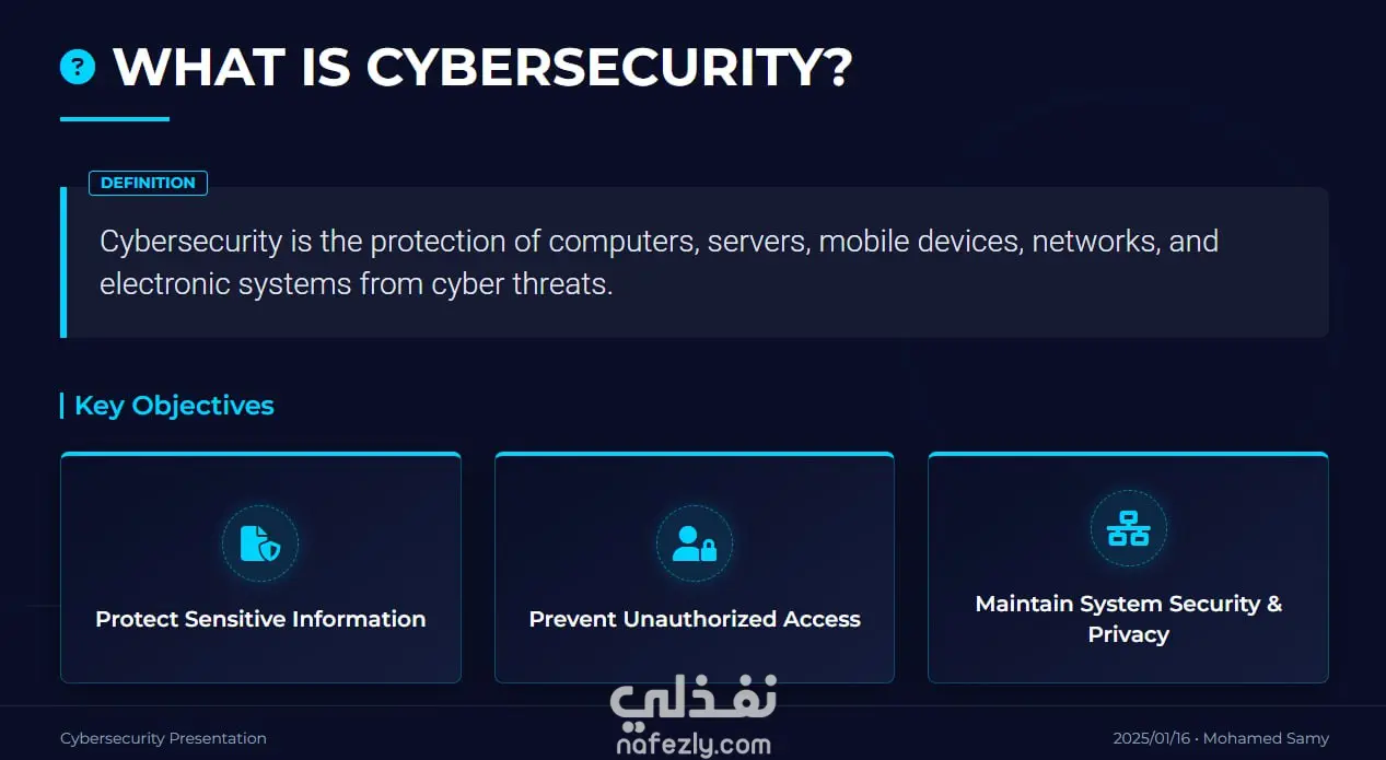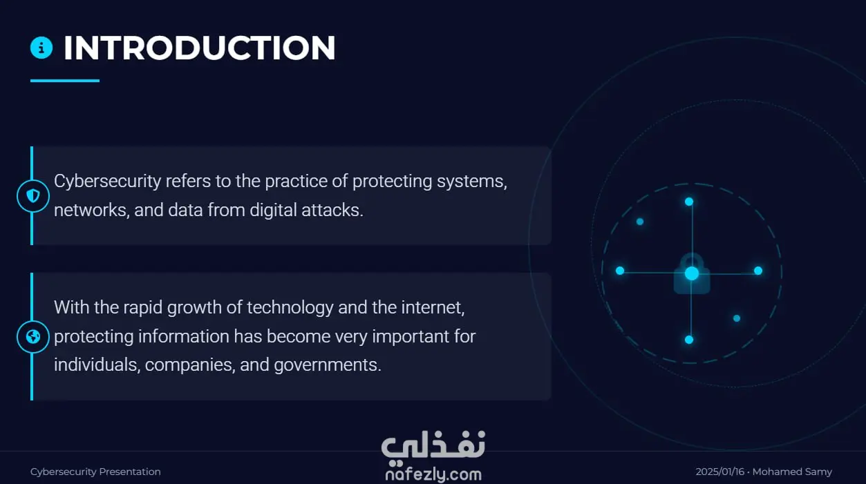 تصميم عرض تقديمي عن الأمن السيبراني (Cybersecurity Presentation)