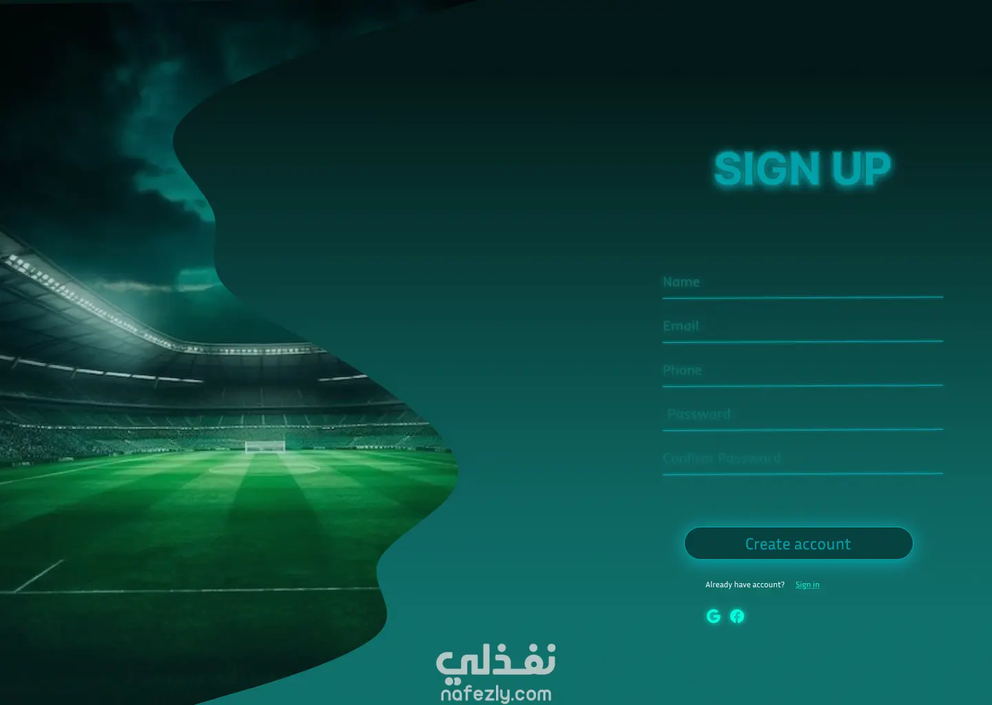 تصميم وجهه لموقع كره قدم