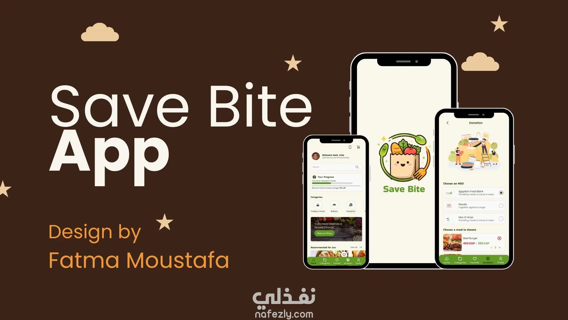 Save Bite هو تطبيق جوال مصمم للمساهمة في تقليل هدر الطعام من خلال ربط الأفراد و المطاعم و الفنادق الذين لديهم فائض من الطعام بالأشخاص المحتاجين و الجمعيات الخيرية.