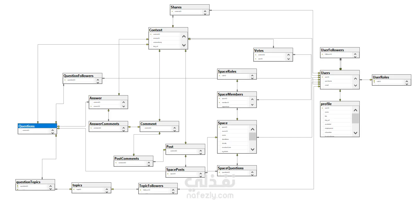 التصميم الهيكلي وقواعد البيانات لمنصة "كورا" (Quora DB Simulation)