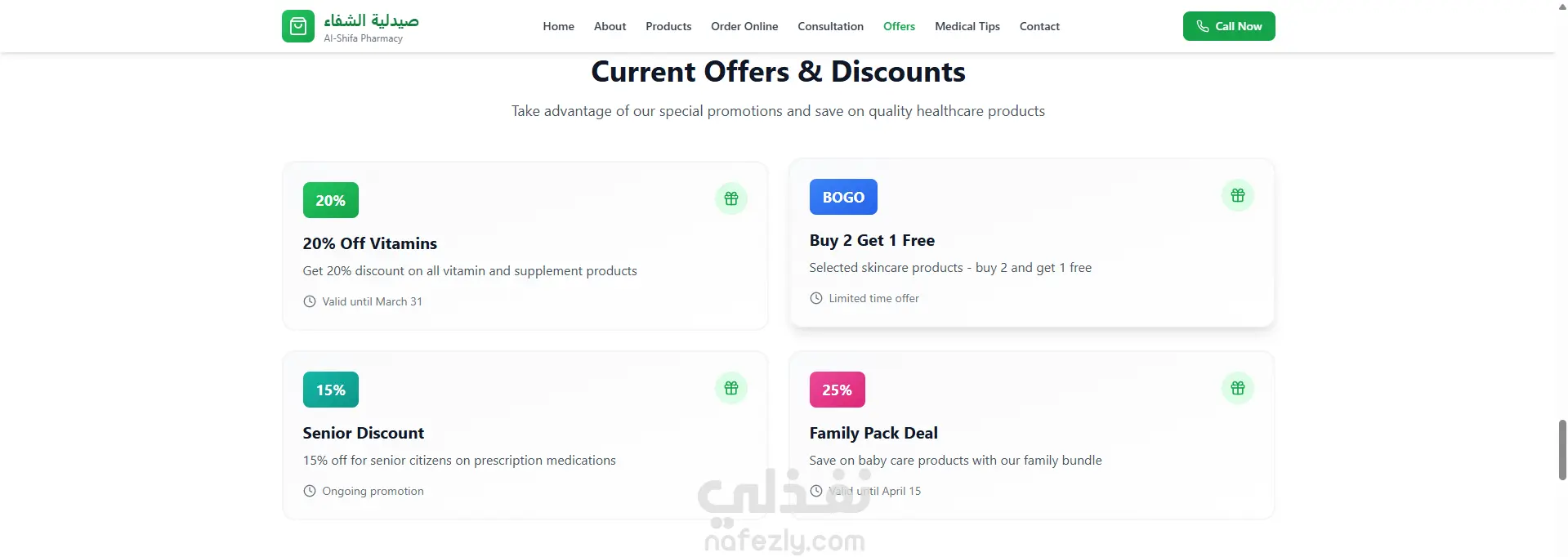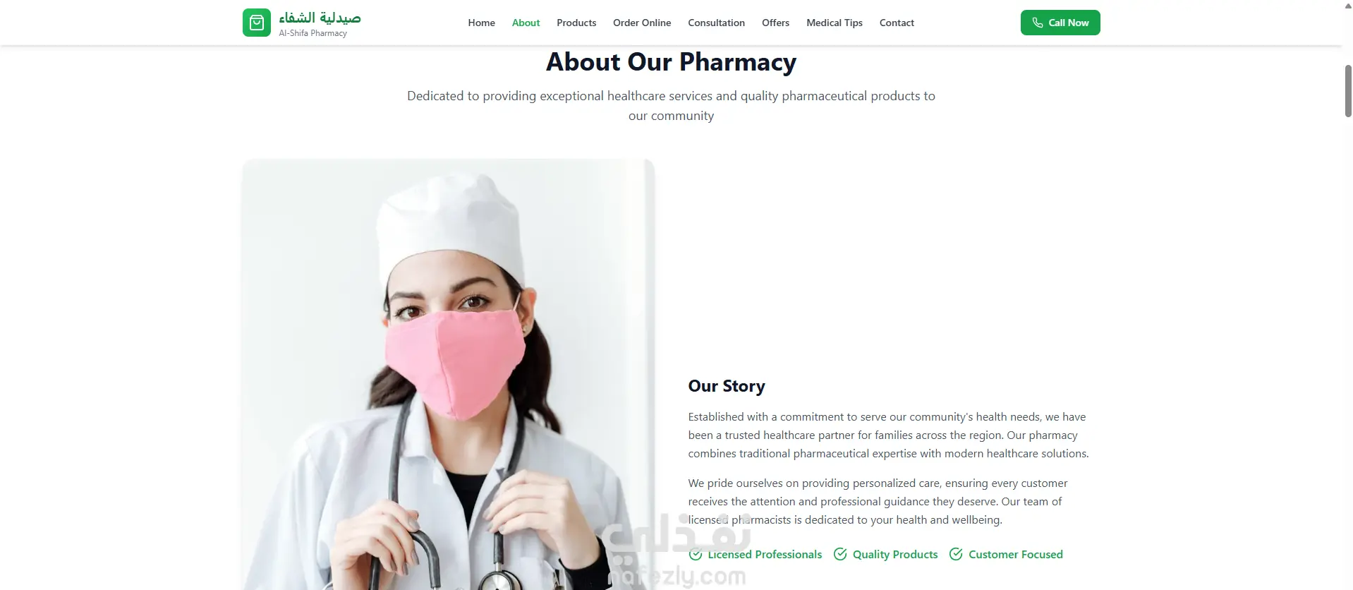 يهدف هذا الموقع الإلكتروني إلى تقديم خدمات صيدلانية متكاملة عبر الإنترنت، حيث يتيح للمستخدمين تصفح الأدوية والمنتجات الطبية بسهولة، والتعرف على المعلومات الدوائية، وطلب المنتجات أو حجزها أونلاين بكل أمان. كما يوفر الموقع استشارات صيدلانية، وعروضًا خاصة، ومحتوى توعوي صحي لمساعدة المرضى على الاستخدام الصحيح للأدوية والحفاظ على صحتهم. تم تصميم الموقع بواجهة عصرية سهلة الاستخدام ومتوافقة مع جميع الأجهزة، ليعكس الثقة والاحترافية في تقديم الخدمات الطبية.