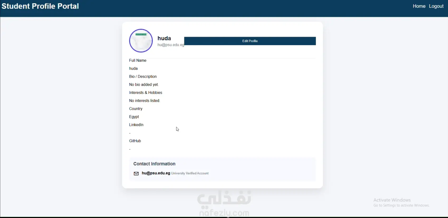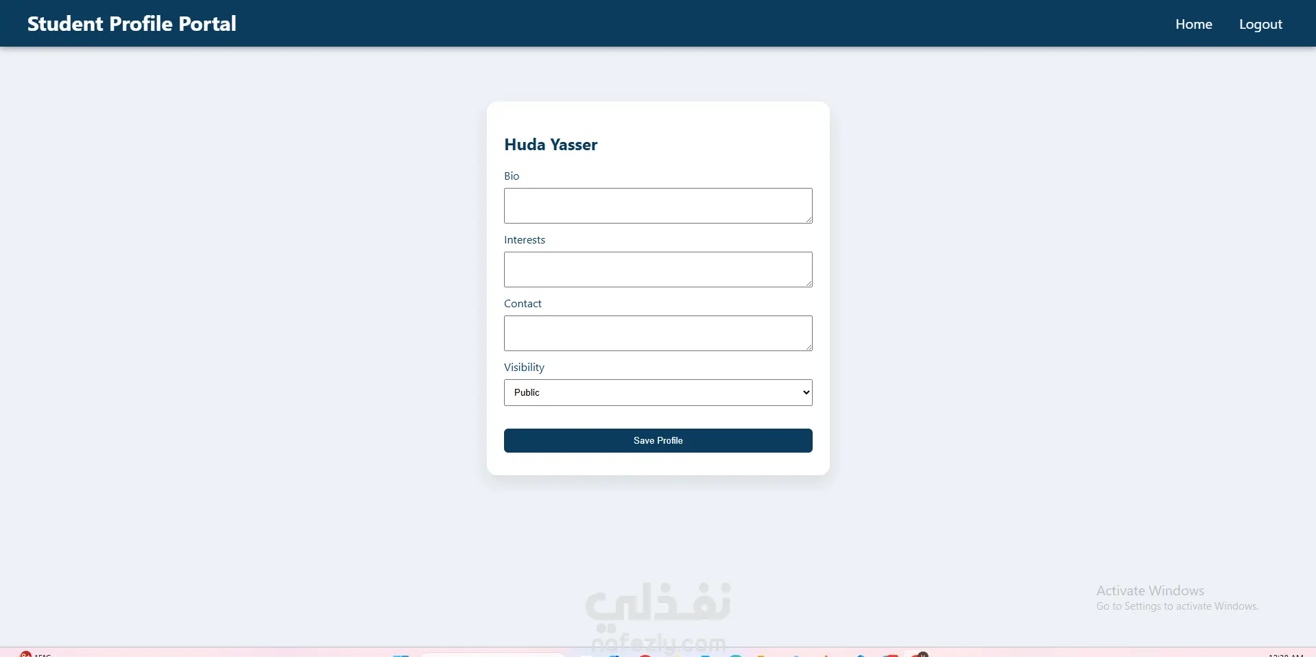 إنشاء Portfolio لكل طالب يعرض بياناته ومهاراته ومشاريعه