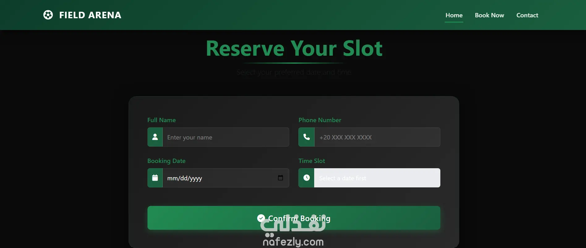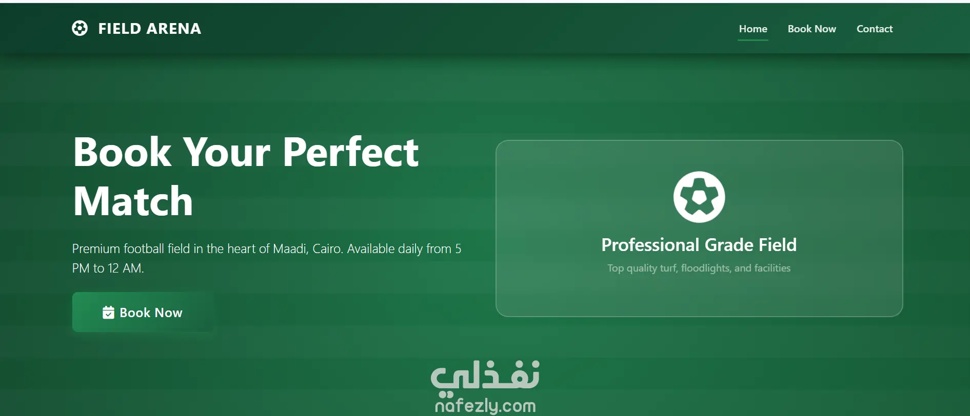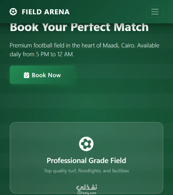 تطبيق ويب متجاوب لحجز مباريات ملعب كرة القدم الخماسي .