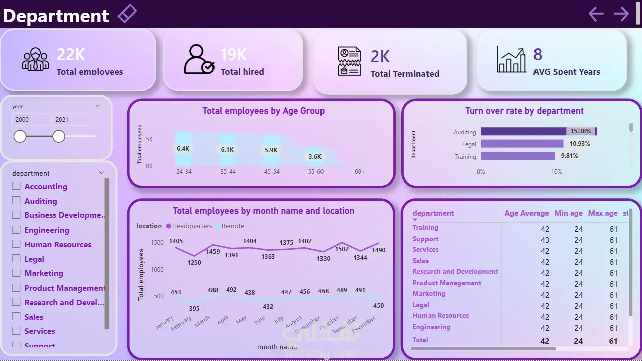 داشبورد تفاعلية لتحليل الموارد البشرية باستخدام Power BI