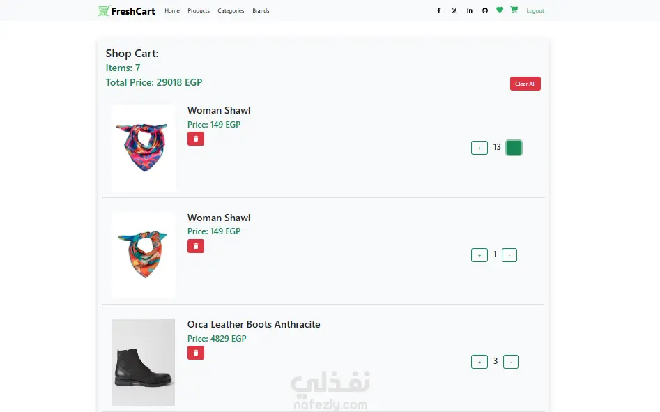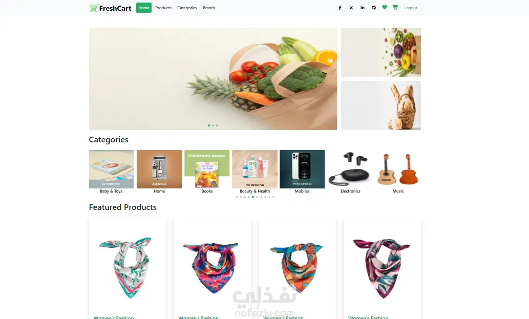 الموقع يوفر واجهة احترافية لعرض المنتجات مع إمكانية إضافة المنتجات إلى عربة التسوق وإدارة المفضلة والتنقل بسهولة بين الصفحات المختلفة.