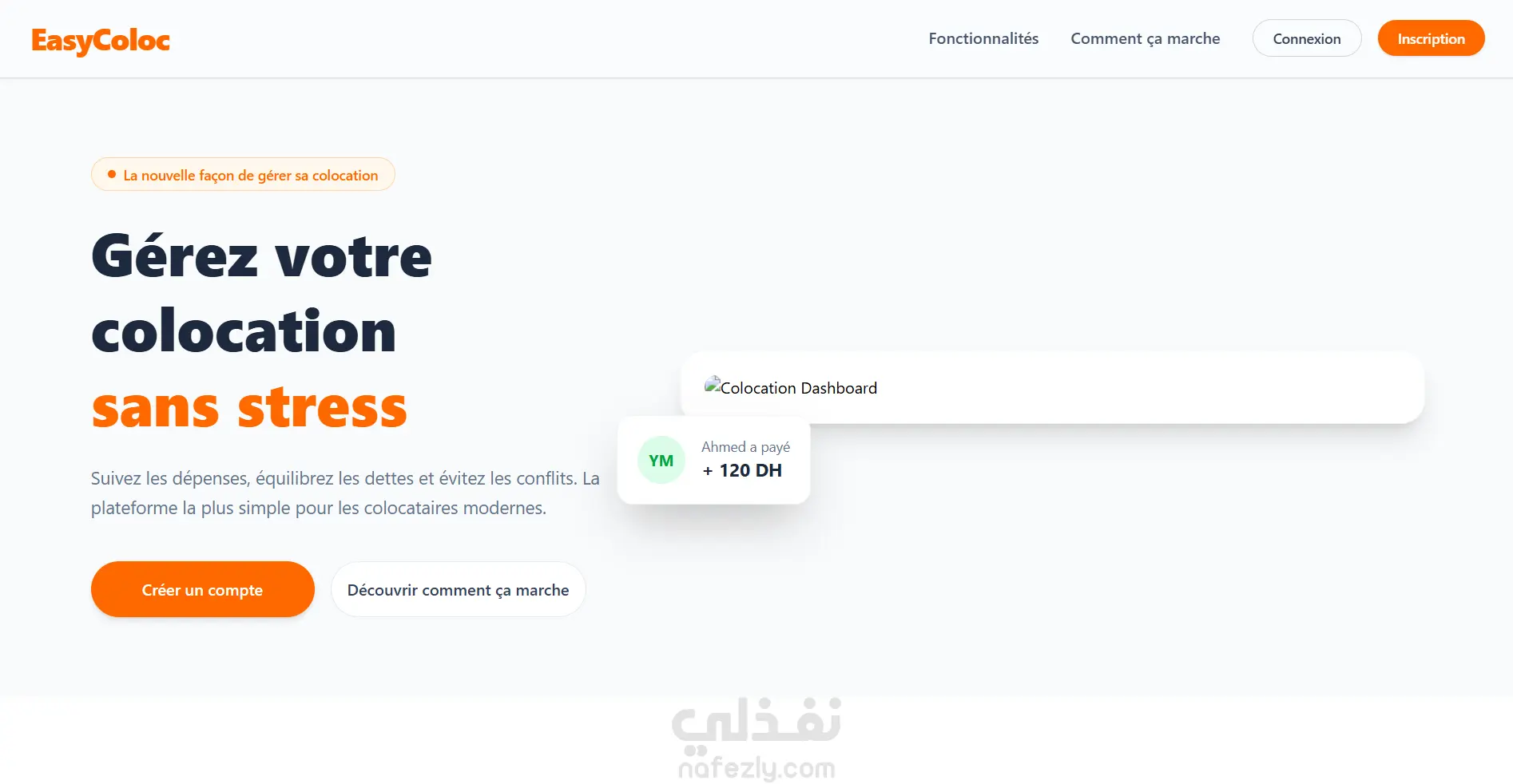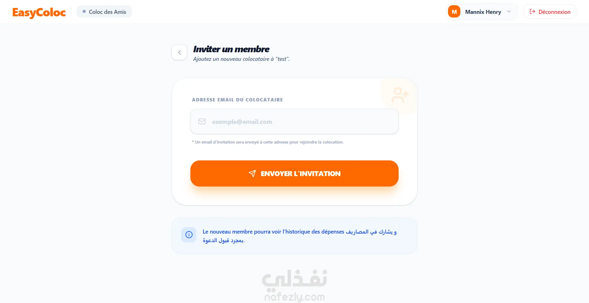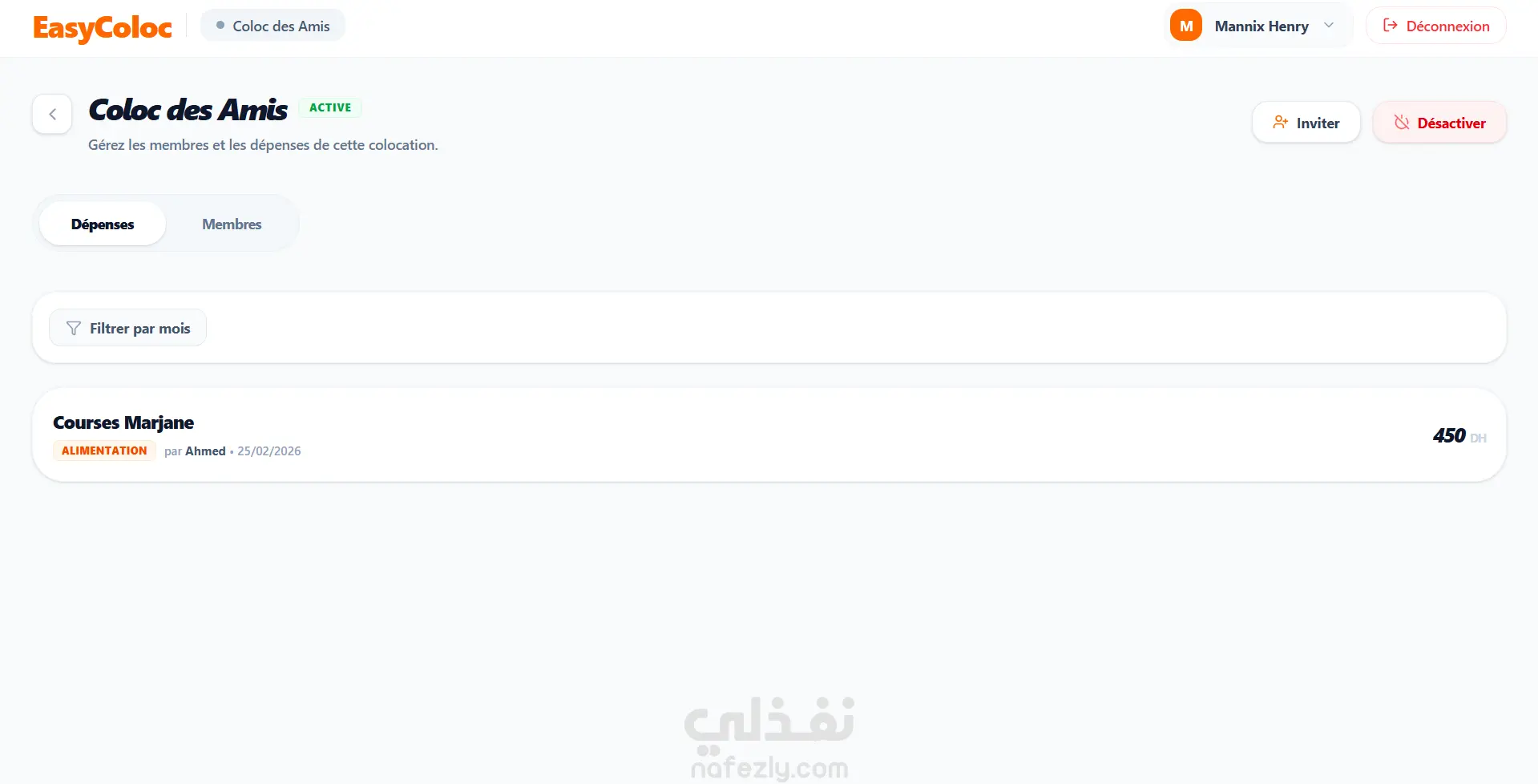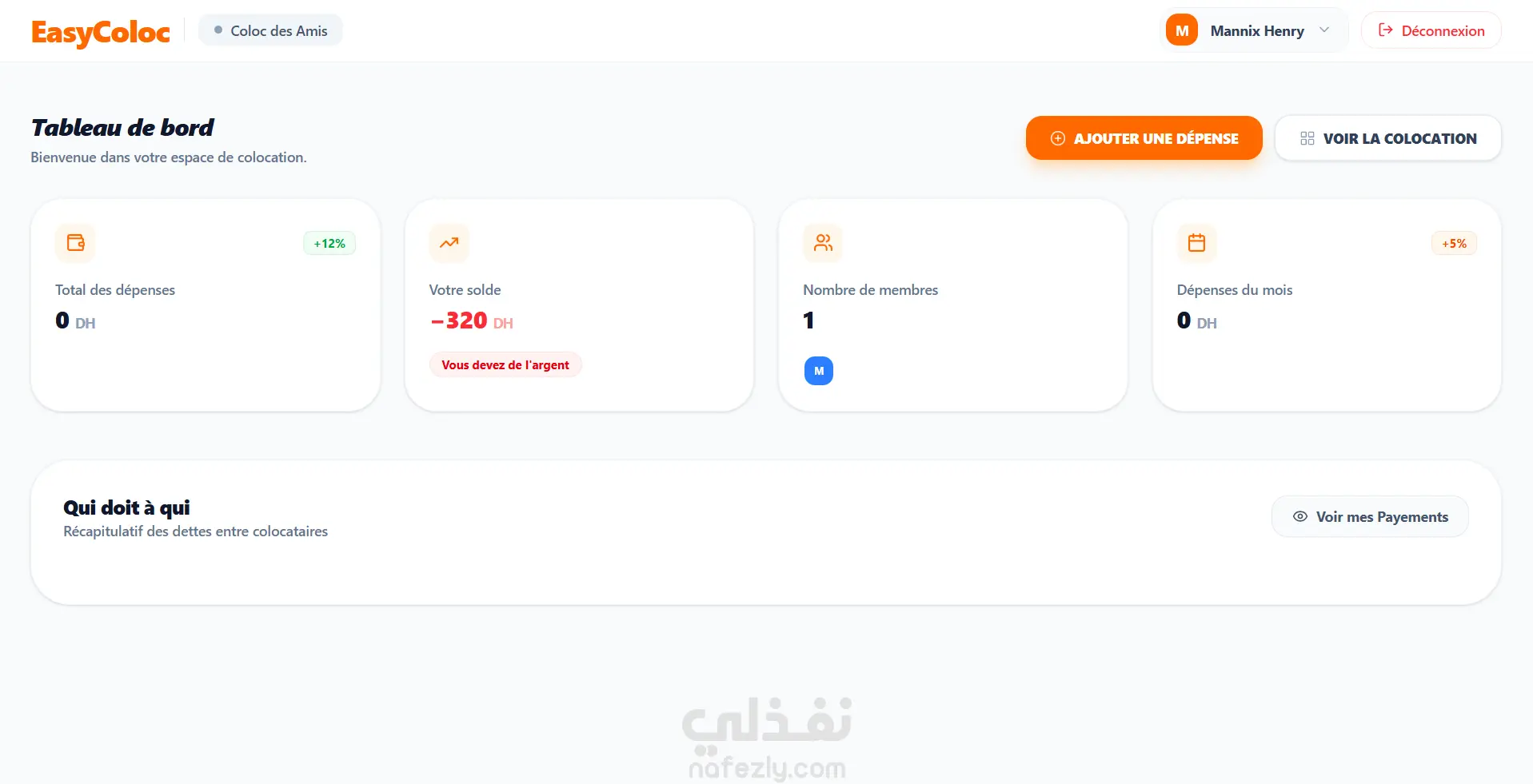 باختصار، يساعد EasyColoc على جعل إدارة المصاريف في السكن المشترك أسهل، أكثر تنظيمًا، وأكثر عدالة بين الجميع.