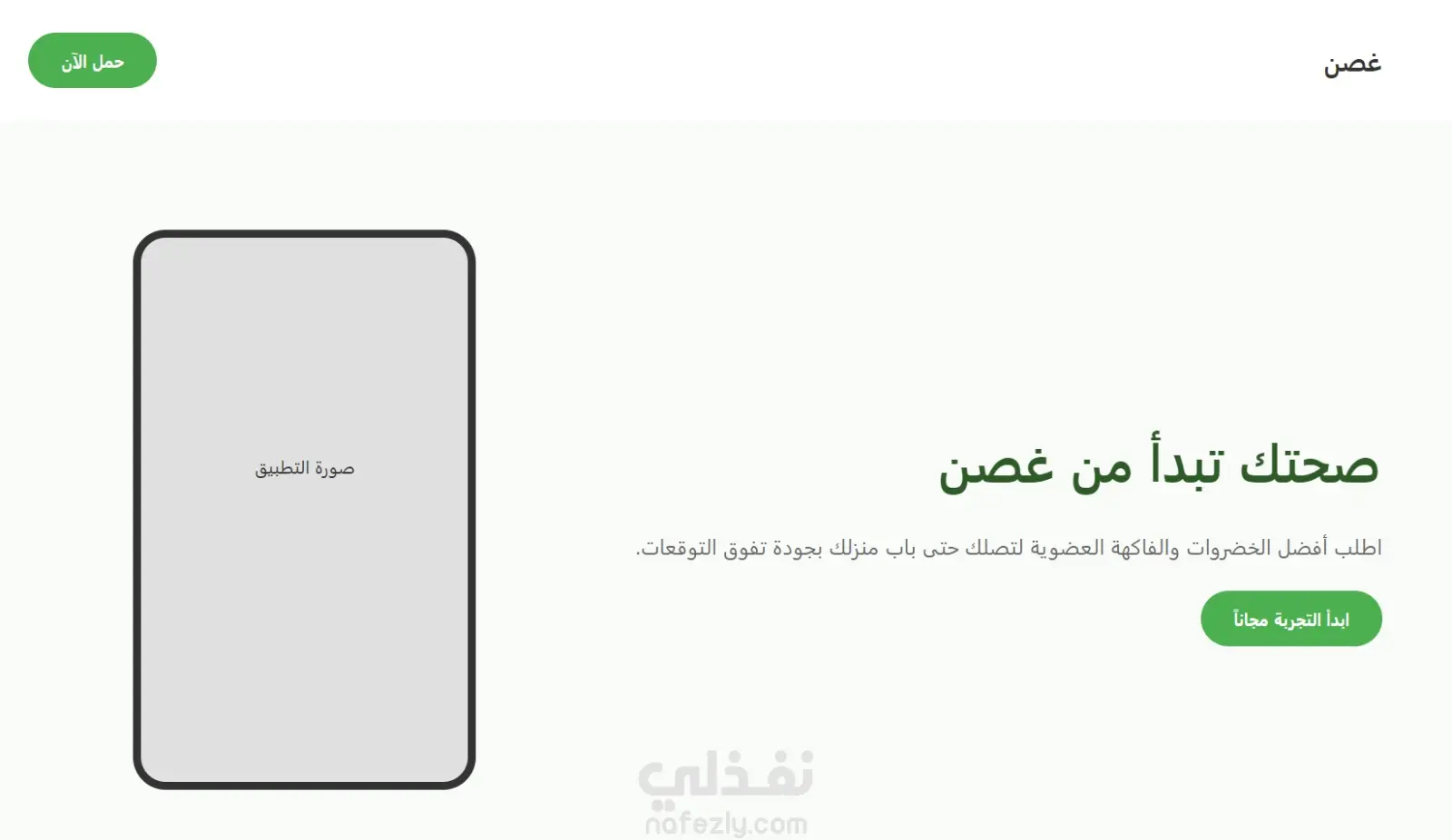 تطبيق "غصن" (صفحة هبوط لتطبيق توصيل أغذية عضوية)