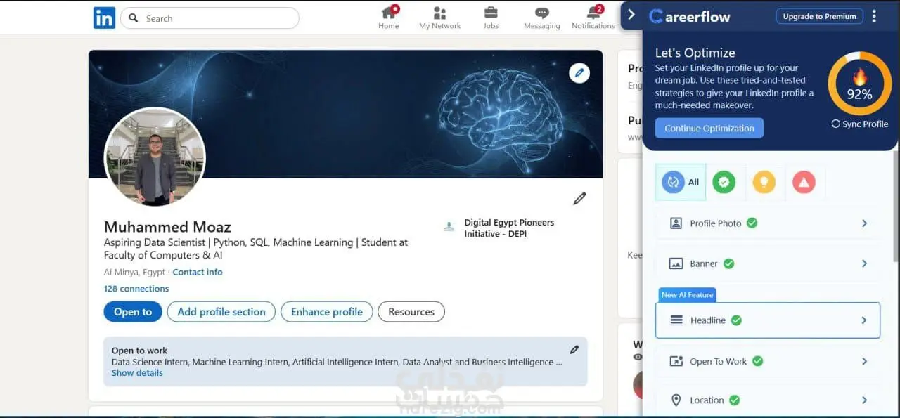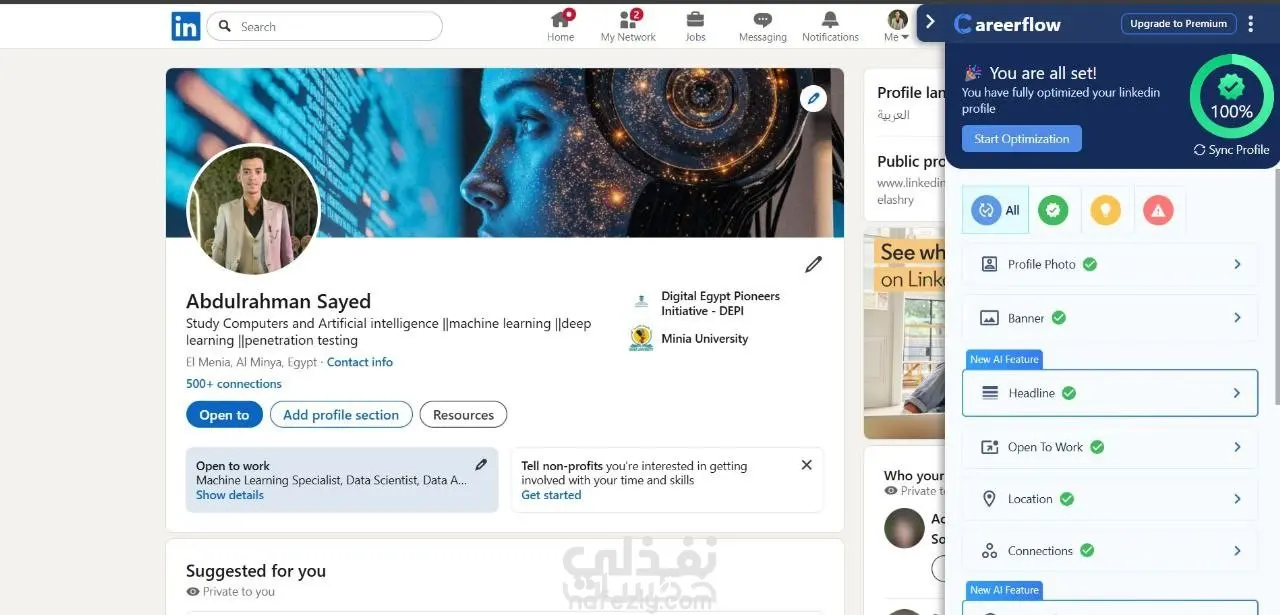 هل تريد حساب LinkedIn احترافي يعكس مهاراتك ويجذب فرص العمل؟ هقدملك خدمة إنشاء وتحسين حساب LinkedIn بطريقة احترافية تساعدك على: *كتابة عنوان احترافي يجذب مسؤولي التوظيف * صياغة نبذة قوية (About Section) * تنسيق الخبرات العملية بشكل جذاب * كتابة المهارات والكلمات المفتاحية بطريقة صحيحة * تحسين ظهور حسابك في نتائج البحث * اقتراح صورة غلاف مناسبة للبروفايل سواء كنت طالب، خريج جديد، أو محترف تبحث عن فرصة أفضل هساعدك على بناء حضور قوي على LinkedIn. تسليم سريع صياغة احترافية خالية من الأخطاء إمكانية التعديل بعد التسليم حجم العمل مقابل سعر الخدمة: ■ انشاء او تحسين حساب واحد فقط