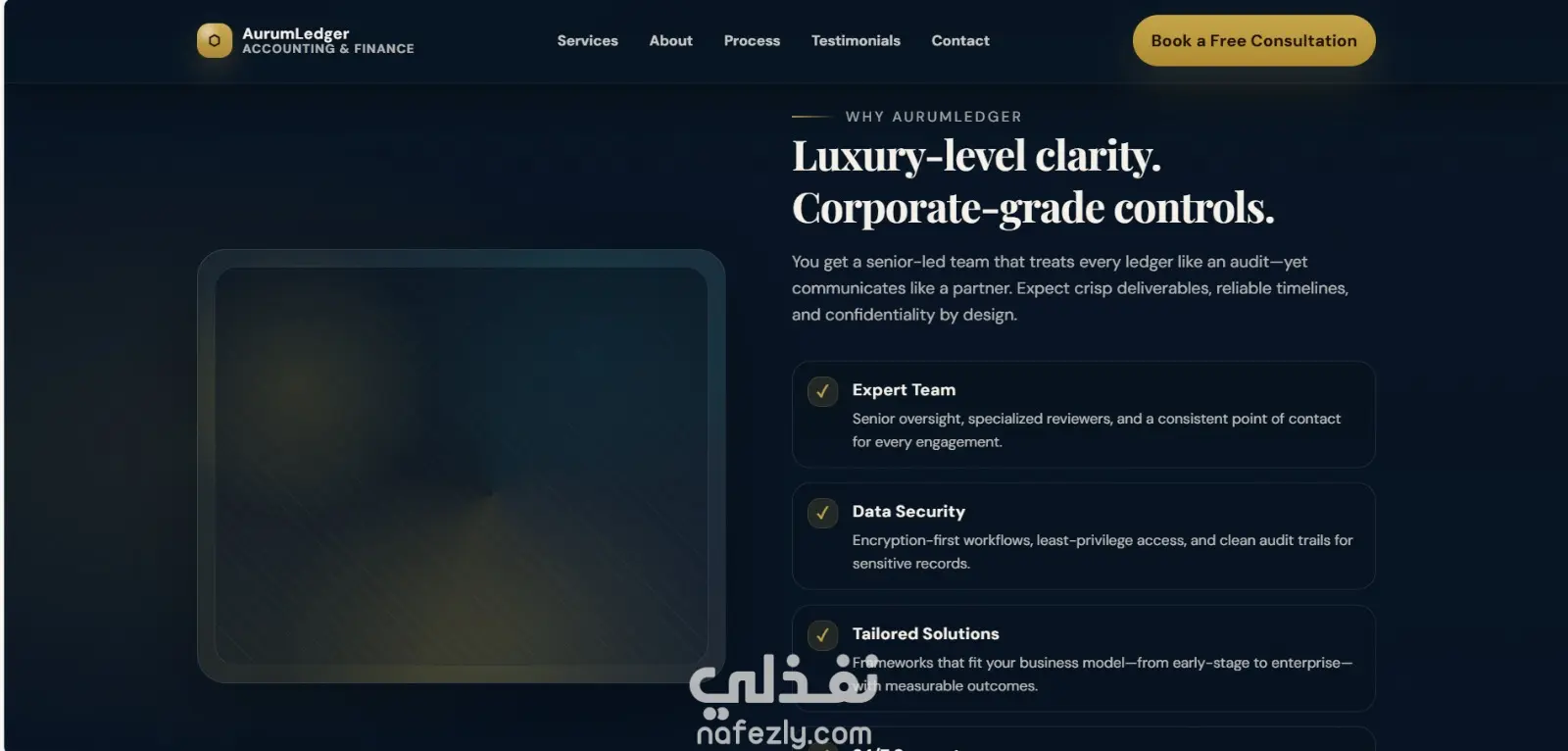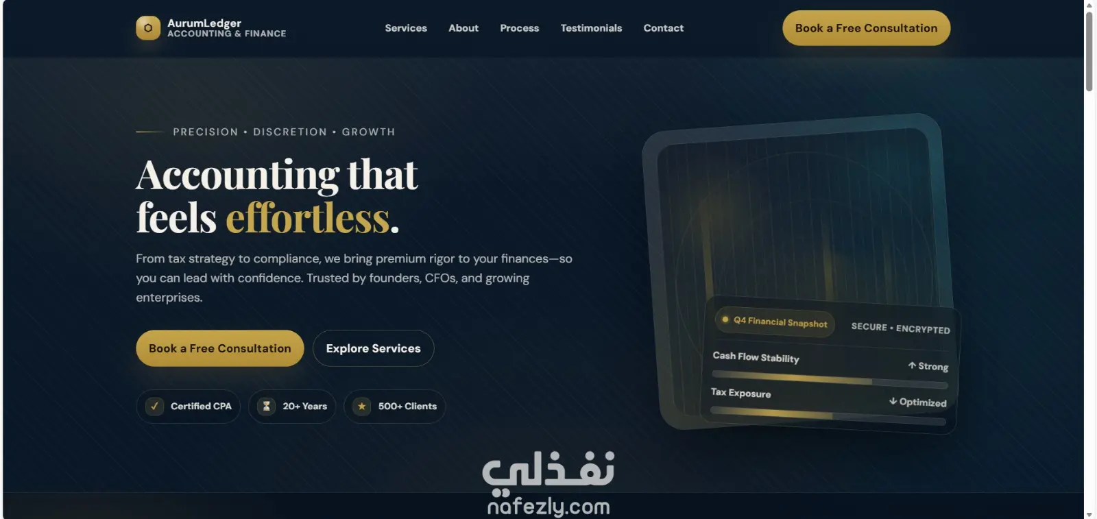 "إدارة حساباتك بسهولة واحترافية" وزر ابدأ الآن أو تواصل معنا.