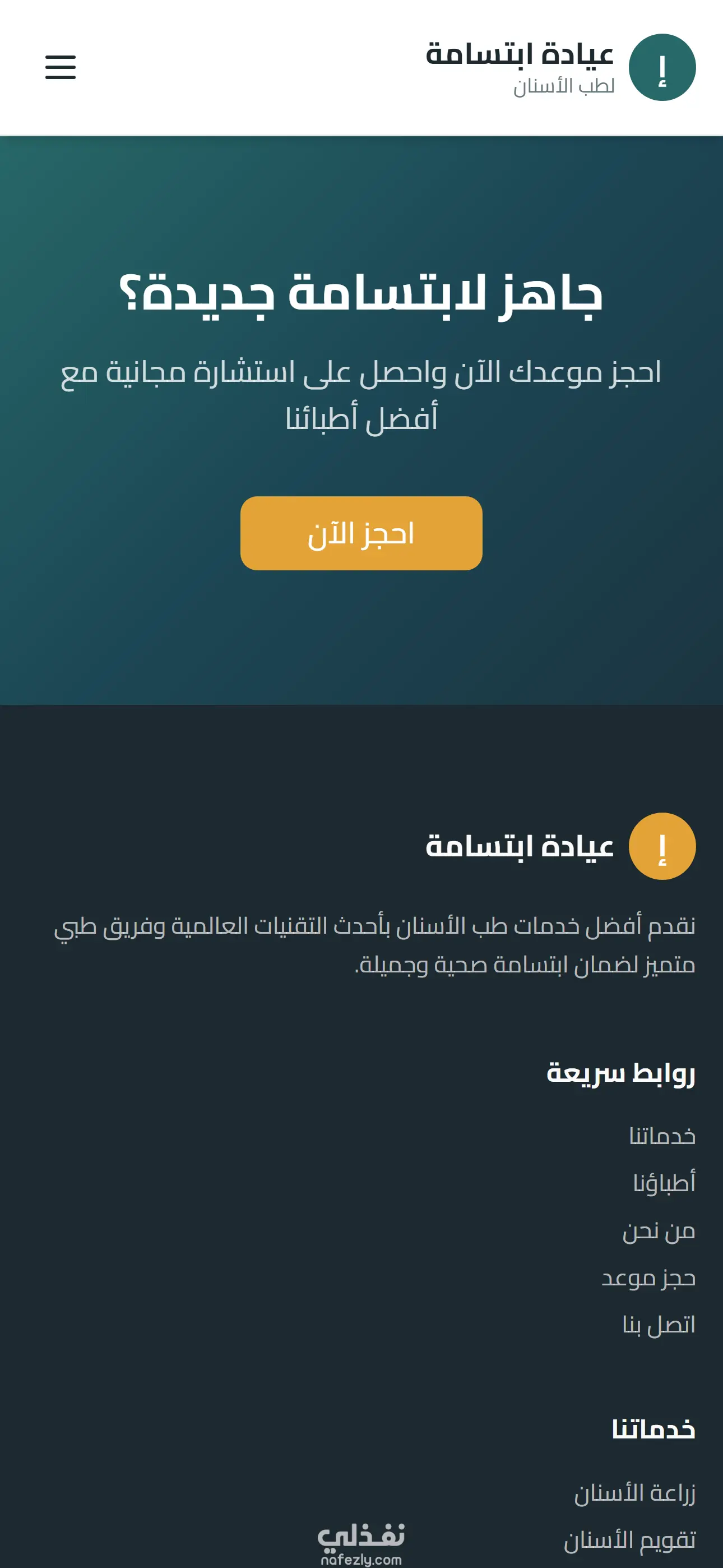 موقع إلكتروني احترافي لعيادة أسنان بتصميم حديث وسهل الاستخدام، مع إنشاء صفحة هبوط مخصصة لإحدى خدمات العيادة مثل زراعة الأسنان بهدف التسويق للخدمة. يتضمن الموقع نظام حجز مواعيد متقدم يسمح للمرضى باختيار الطبيب، وعرض الأوقات المتاحة تلقائيًا، ومنع الحجز المكرر لنفس الموعد. كما يتم إرسال إشعار عبر البريد الإلكتروني لإدارة العيادة عند كل عملية حجز جديدة.