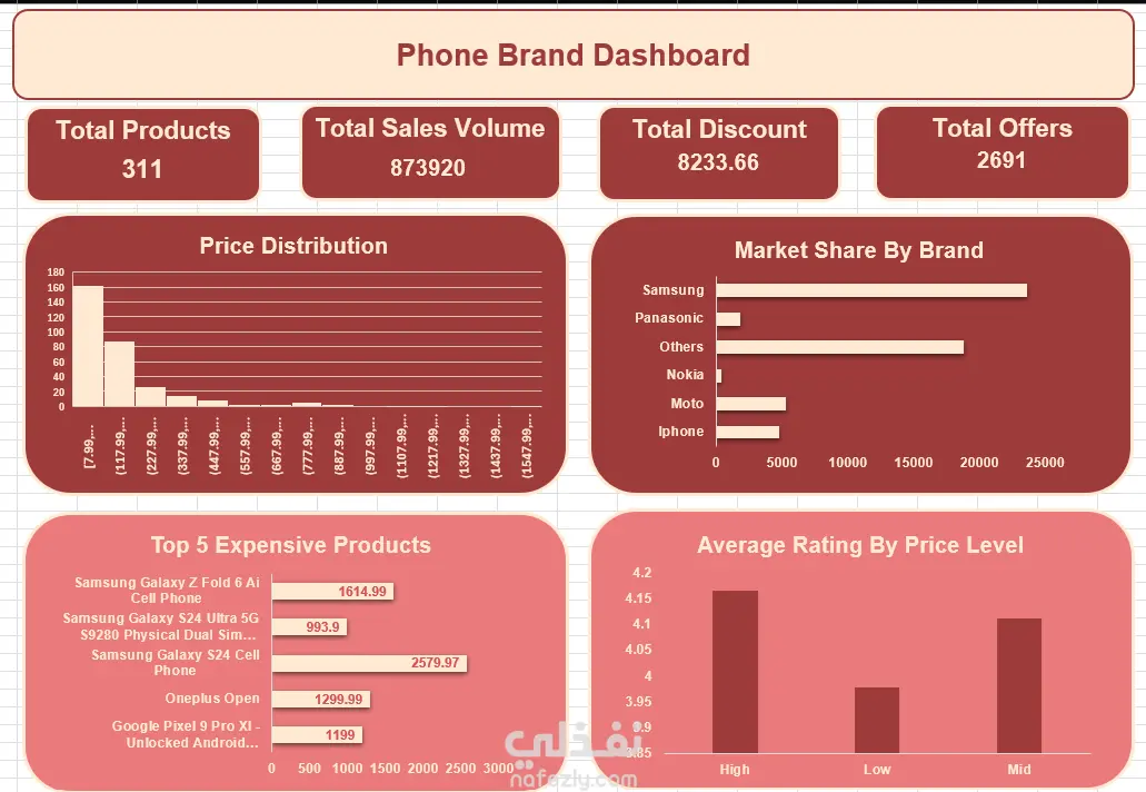 في هذا المشروع قمت بتحليل بيانات سوق الهواتف الذكية لمعرفة أداء العلامات التجارية المختلفة وتحليل الأسعار وتقييم المنتجات. تساعد هذه الداشبورد على: • تحليل توزيع أسعار الهواتف في السوق • معرفة الحصة السوقية لكل علامة تجارية • تحديد أغلى المنتجات في السوق • مقارنة تقييمات المنتجات حسب الفئة السعرية النتيجة: توفير رؤية واضحة حول اتجاهات سوق الهواتف الذكية مما يساعد الشركات أو المتاجر في اتخاذ قرارات تسويقية أفضل. الأدوات المستخدمة: Microsoft Excel – Data Cleaning – Pivot Tables – Data Visualization