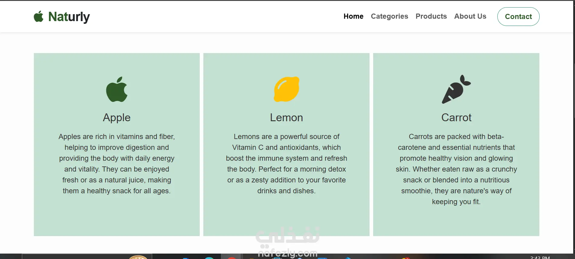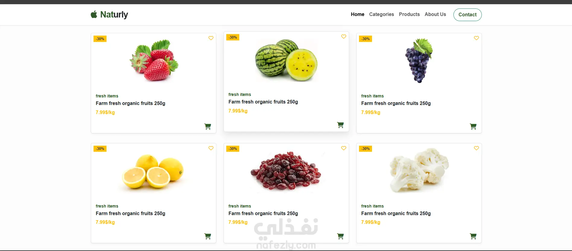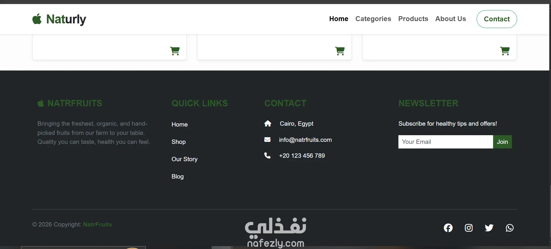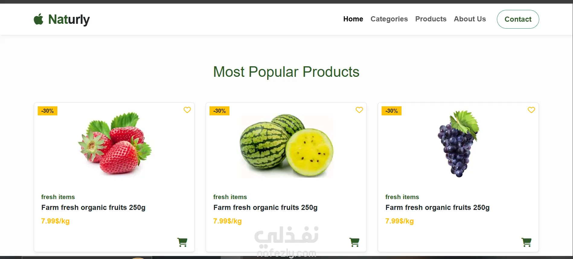 Naturly - تصميم وبرمجة واجهة متجر إلكتروني للمنتجات العضوية (Landing Page)