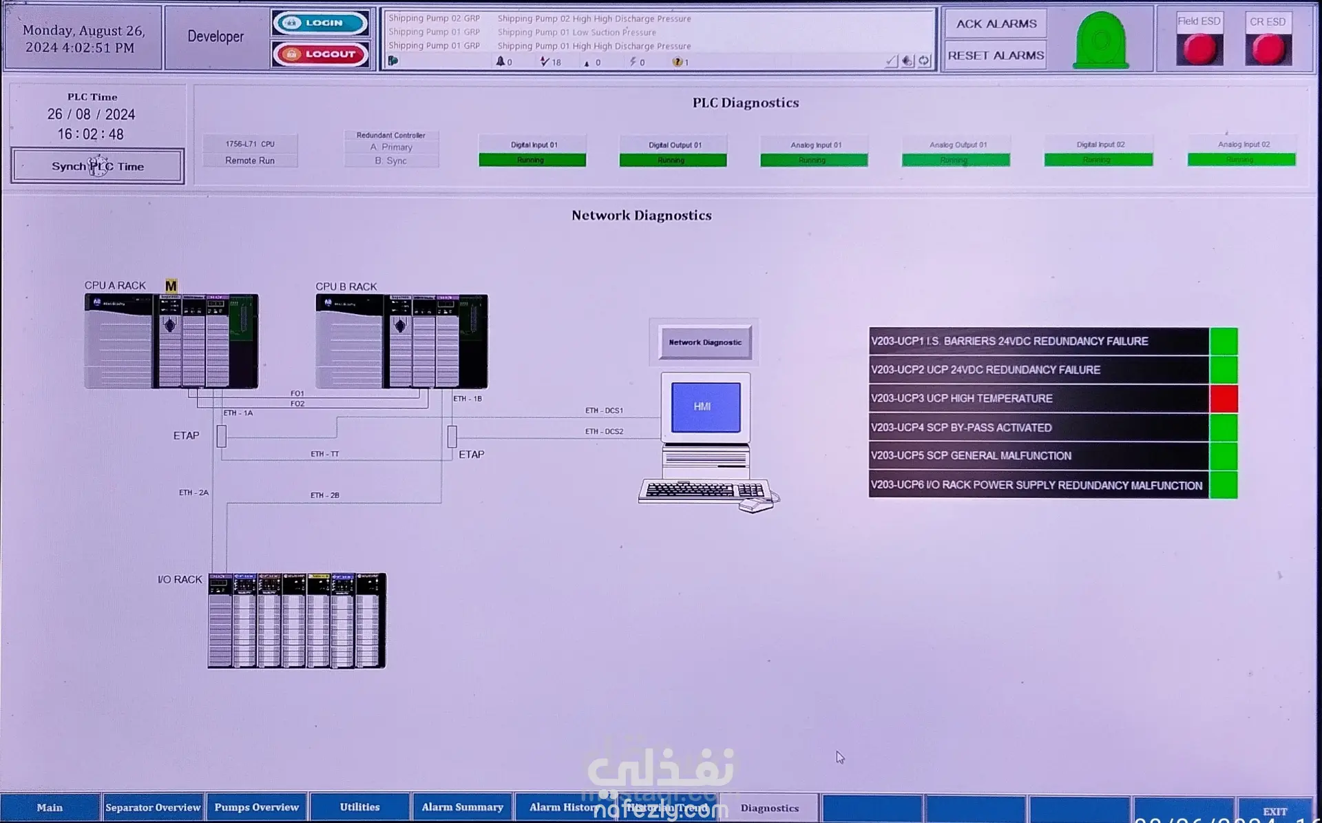 - تطوير وتحديث برامج الـ PLC الخاصة بتشغيل وحماية مضخات الشحن.