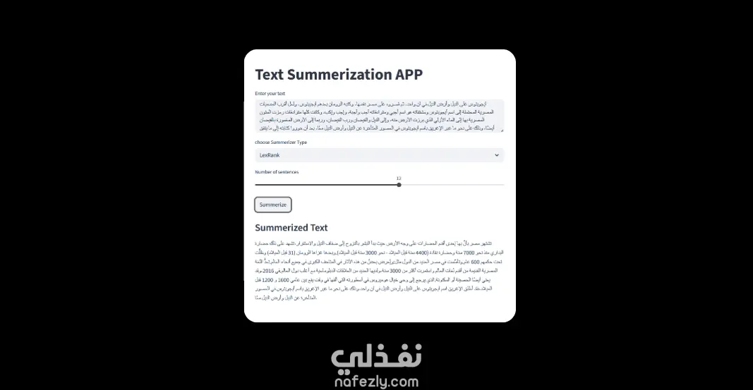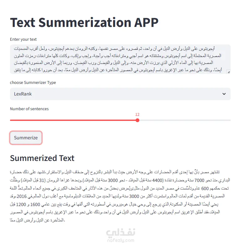 نموذج ذكاءاصطناعي يساعد في تلخيص النصوص بناءا علي بعض الخوارزميات الموجوده في بايثون