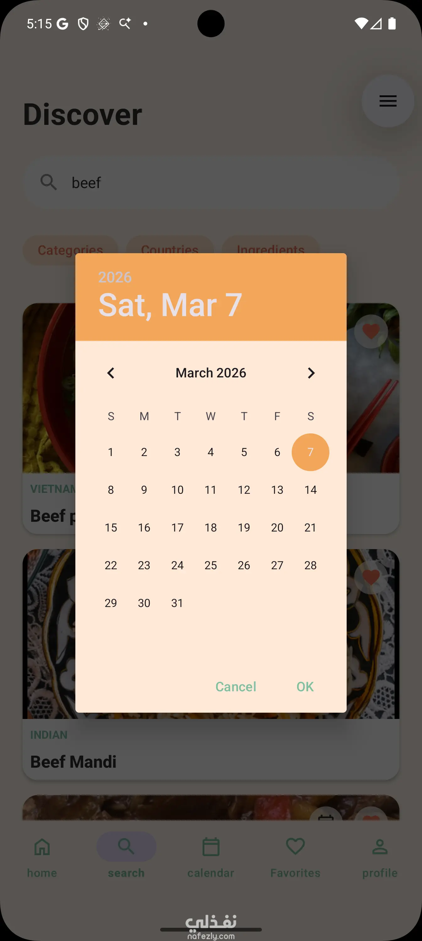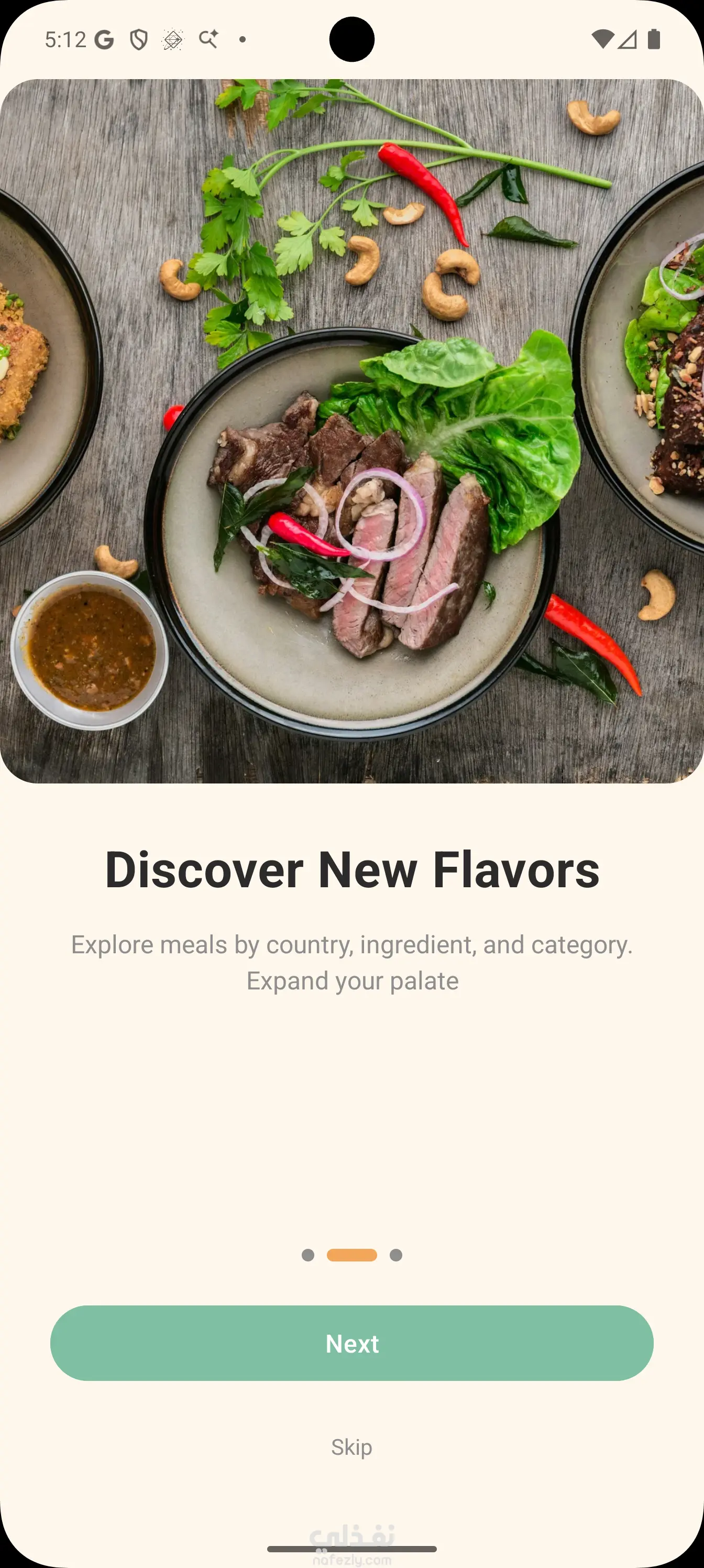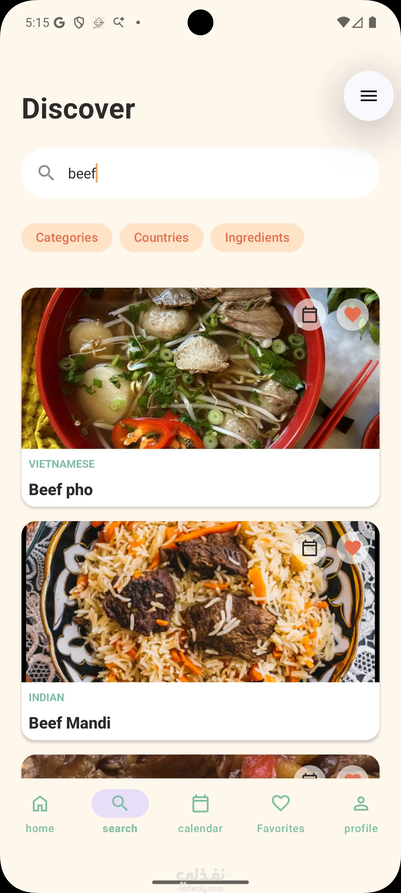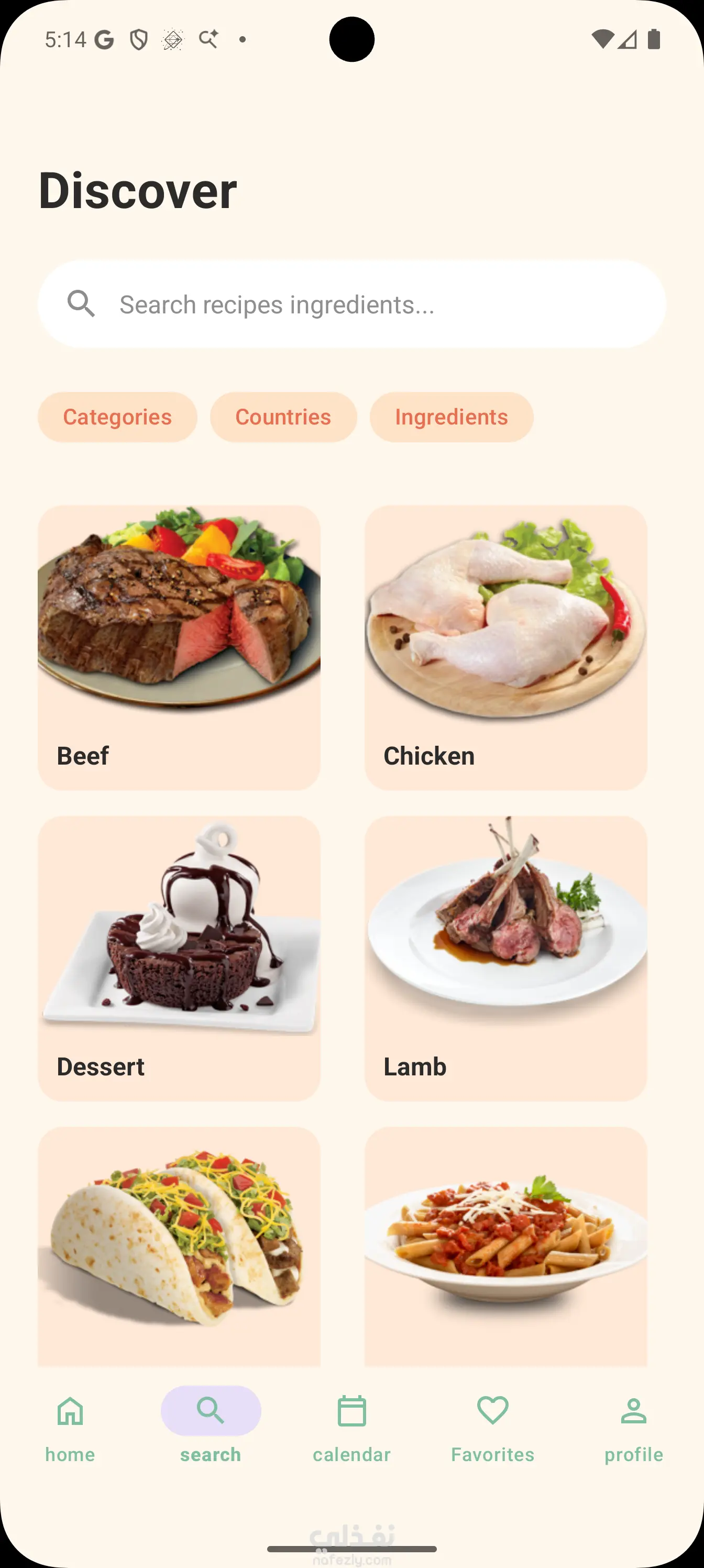 ابليكيشن لعرض وجبات حسب الدول او المكونات او الفئه يمكنك البحث باسم الاكله و اضافه اكله الي المفضله و نمظيم الوجبات لكل يوم و يوجد نتيجه لكل يوم