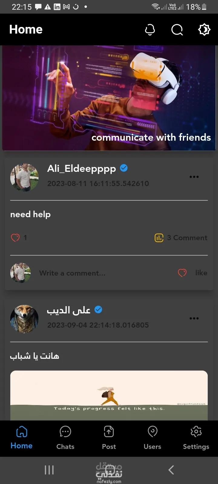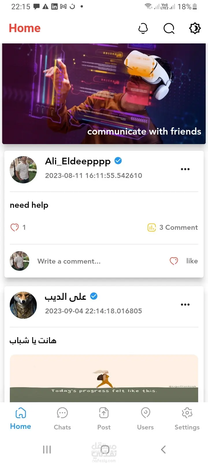 تطبيق تواصل اجتماعي يتيح للمستخدمين إنشاء حسابات شخصية والتفاعل فيما بينهم من خلال إضافة المنشورات، الإعجاب بها، والتعليق عليها في الوقت الفعلي. يوفر التطبيق أيضًا إمكانية بدء محادثات مباشرة بين المستخدمين، استعراض جميع مستخدمي المنصة، وتعديل البيانات الشخصية مثل الاسم والصورة الشخصية، مما يخلق تجربة تواصل متكاملة وسلسة. 🔹 مميزات النظام: إنشاء وإدارة المنشورات (إضافة – تعليق – إعجاب) محادثات فورية بين المستخدمين عرض المستخدمين المسجلين داخل المنصة تعديل الملف الشخصي (الاسم – الصورة) تخزين البيانات بشكل آمن وسريع التقنيات المستخدمة: Flutter لبناء واجهة متعددة المنصات Firebase Authentication لإدارة المستخدمين Cloud Firestore لتخزين البيانات والتحديث اللحظي Cubit (Bloc) لإدارة الحالة Shared Preferences لتخزين البيانات محليًا
