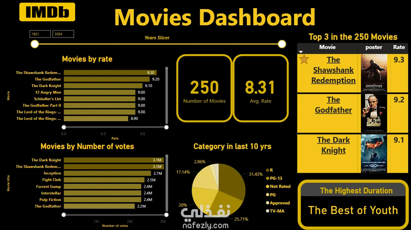 لوحة تحليل أفضل 250 فيلم على IMDB | Power BI