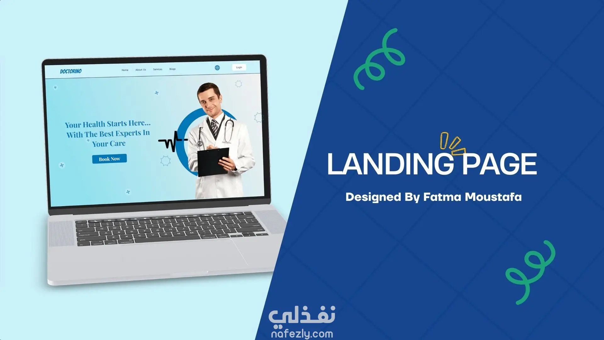 قمت بتصميم واجهة مستخدم حديثة لصفحة هبوط لموقع Doctorino، وهو موقع يهدف إلى تسهيل عملية حجز المواعيد مع الأطباء وتقديم الخدمات الطبية للمستخدمين بطريقة سهلة وسريعة.