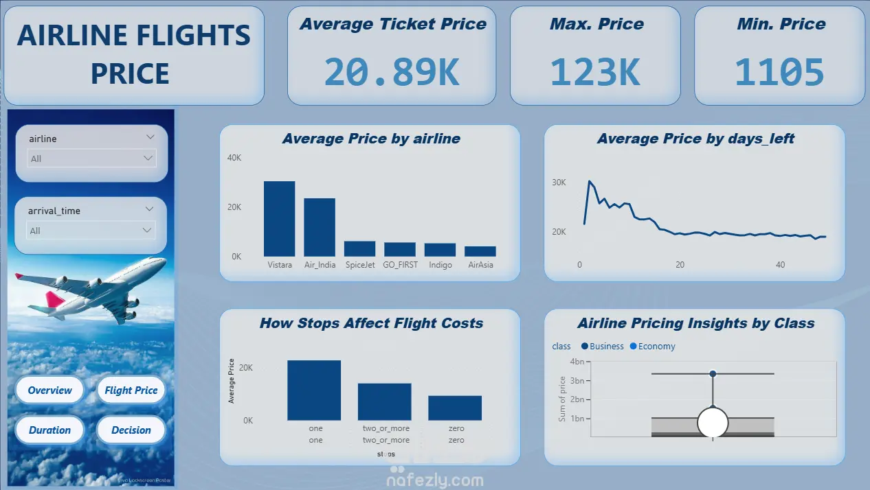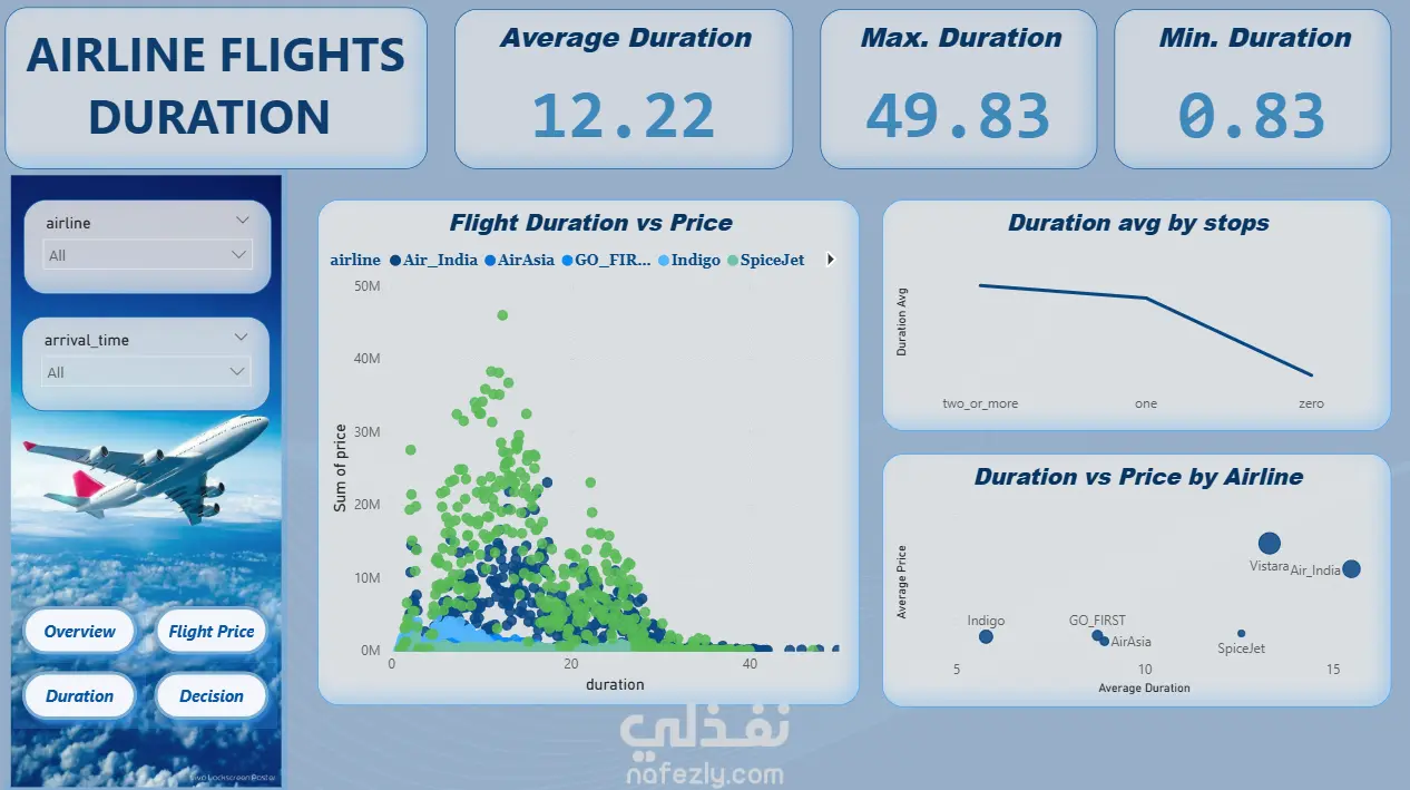 تحليل بيانات رحلات الطيران وبناء نموذج تنبؤ بالأسعار | Python & Power BI