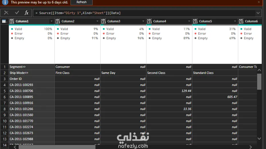تنظيف بيانات باستخدام Power BI