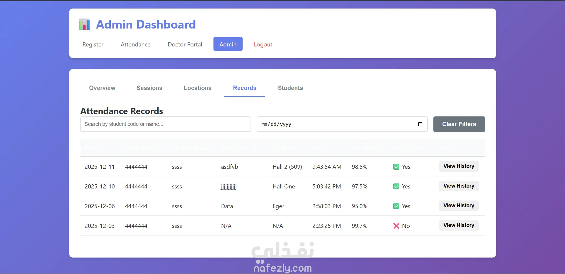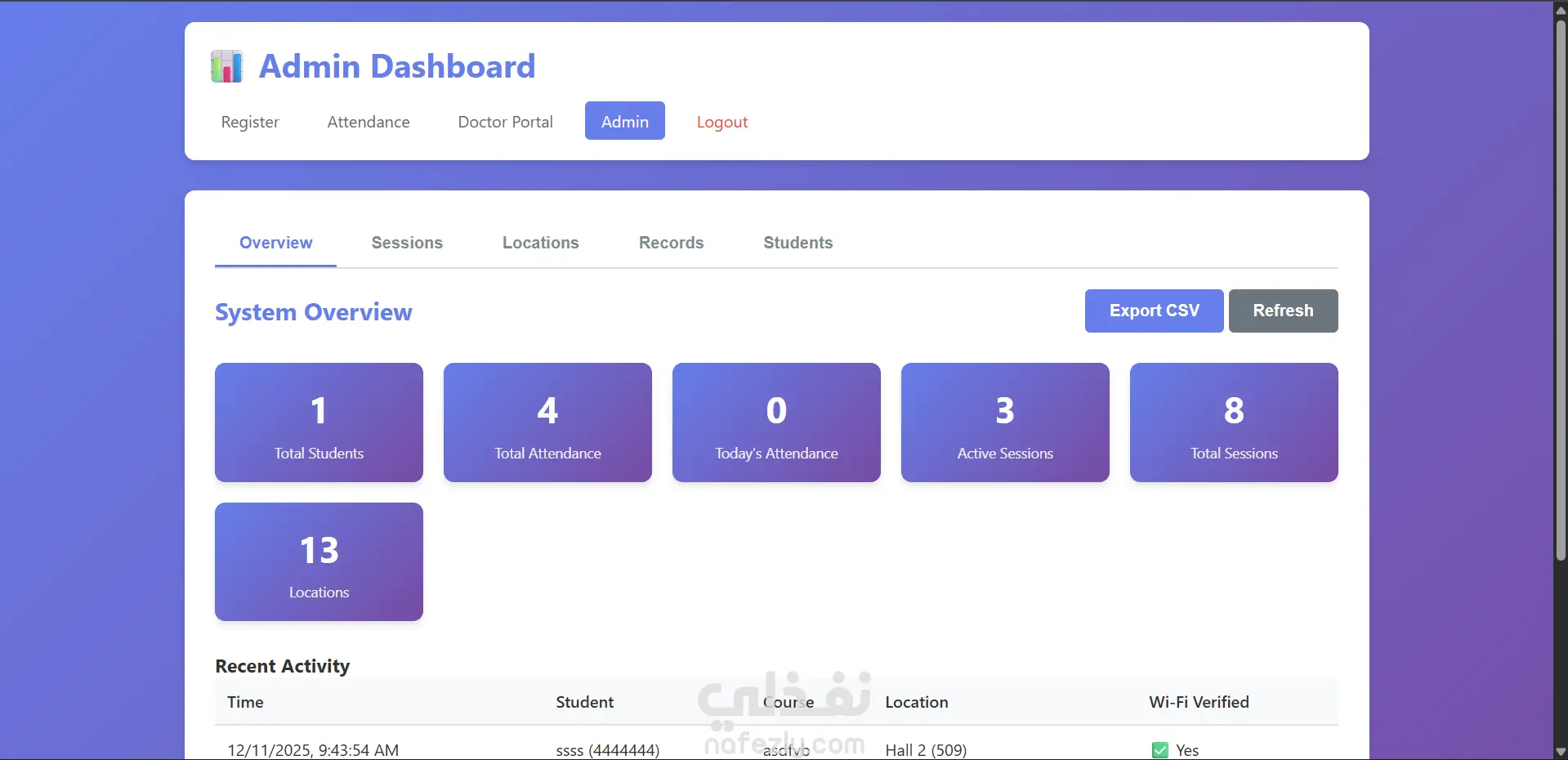 نظام حضور ذكي يعتمد على شبكة Wi-Fi والتحقق بالكاميرا مع لوحة تحكم للإدارة