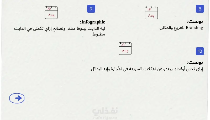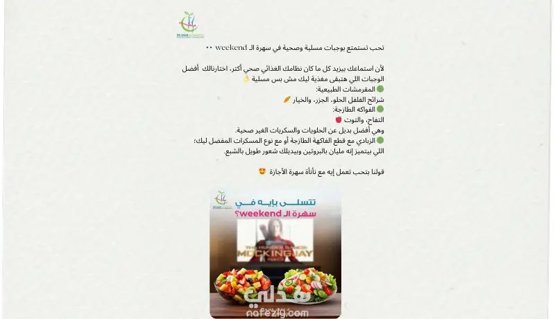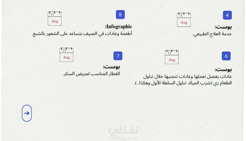 التخطيط لـ editorial calendar شهرية لبراند (تغذية وعلاج طبيعي).