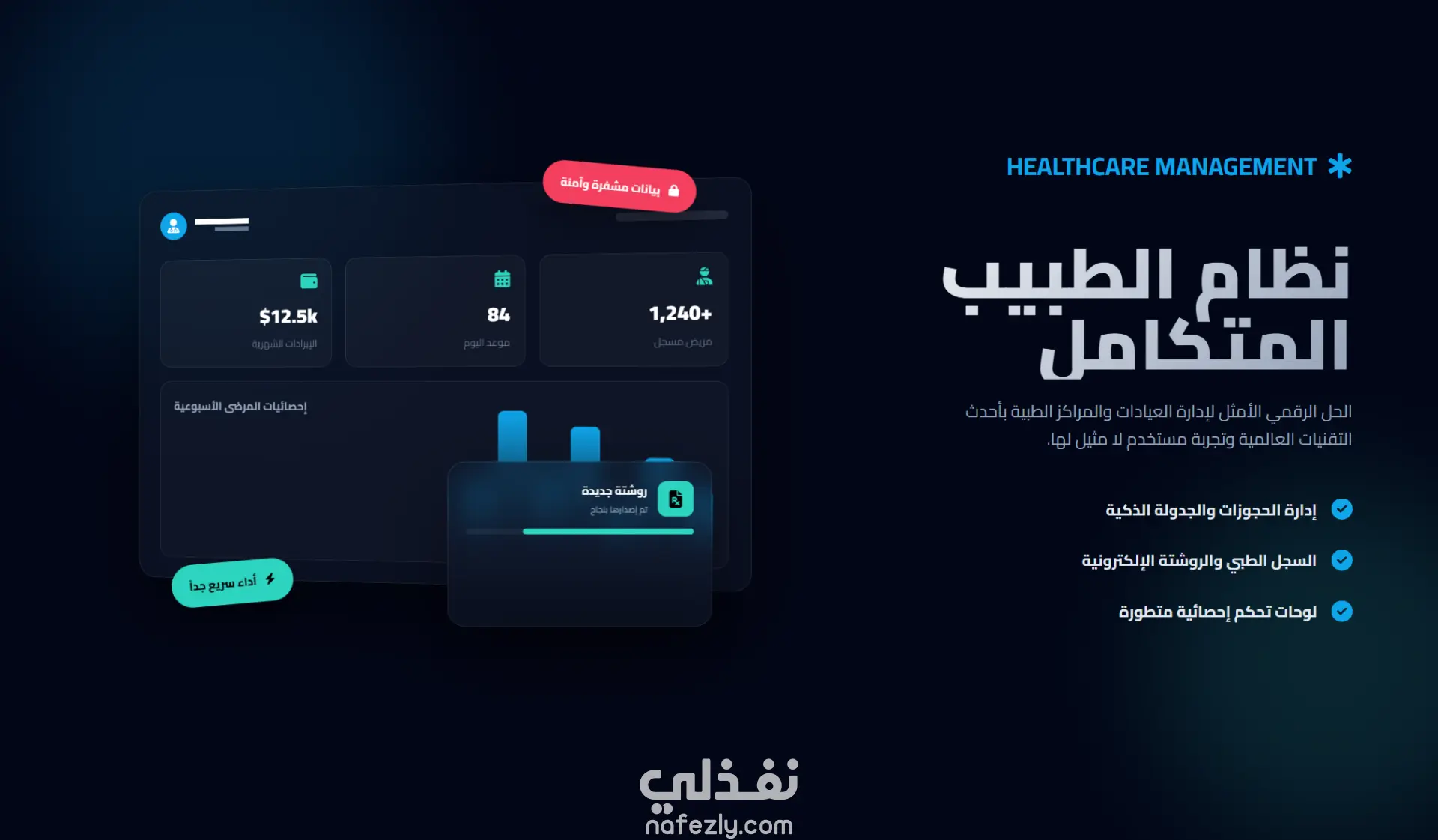 نظام إدارة الرعاية الصحية المتكامل (نظام إدارة الرعاية الصحية عبر الإنترنت) هو منصة احترافية لإدارة العيادات والمراكز الطبية مع تجربة مستخدم عصرية.