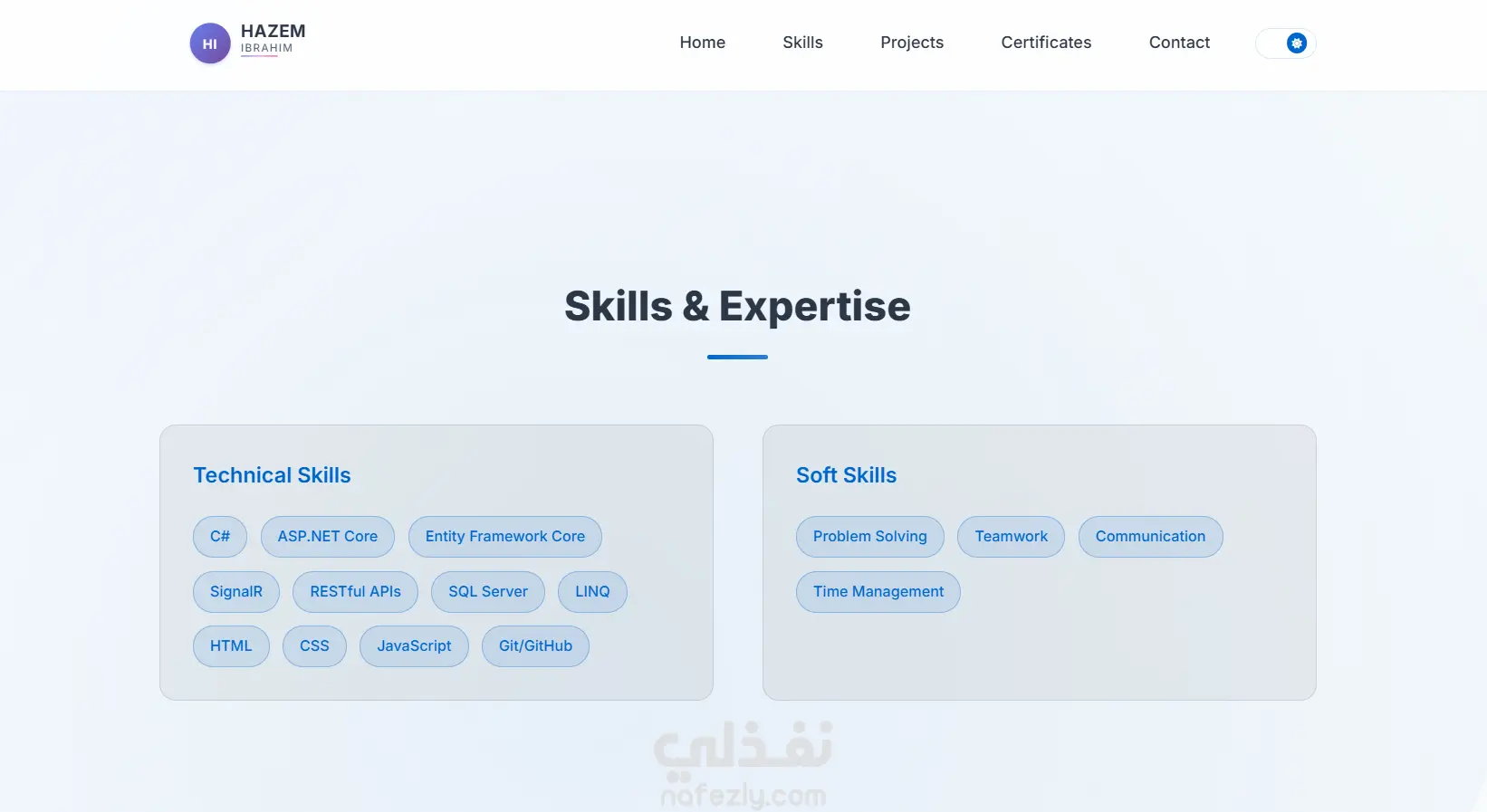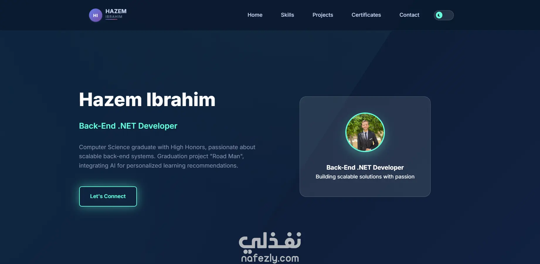 الملف الشخصي (Personal Portfolio) المصمم خصيصاً للمبدعين والمحترفين الذين يبحثون عن واجهة رقمية تعكس جودة أعمالهم. لماذا تختار هذا المشروع؟ تجربة بصرية فريدة: تصميم يعتمد على أحدث صيحات الويب (Modern Glassmorphism) مع خلفيات تفاعلية تجعل تصفح الموقع تجربة ممتعة. سهولة الإدارة (Full Control Panel): لا تحتاج لخبرة برمجية لتعديل محتواك، الموقع مدمج بلوحة تحكم احترافية تمكنك من إضافة مشاريعك، مهاراتك، وشهاداتك بضغطة زر. دعم الوضع الليلي والنهاري: واجهة ذكية تتكيف مع راحة المستخدم البصرية. سرعة وأداء فائق: تم تطوير الموقع باستخدام كود نظيف (Pure Code) لضمان أسرع استجابة وتوافق مع محركات البحث (SEO). تصميم متجاوب بالكامل: يظهر مشروعك بأفضل شكل على الموبايل، التابلت، والحاسوب. الأقسام المتاحة: قسم تعريفي (Hero Section) جذاب. معرض مشاريع احترافي بتأثيرات Hover متطورة. قسم مهارات وتقنيات موزع بشكل شبكي عصري. سجل الشهادات والمناصب. نظام تواصل مباشر بلمسة فنية.