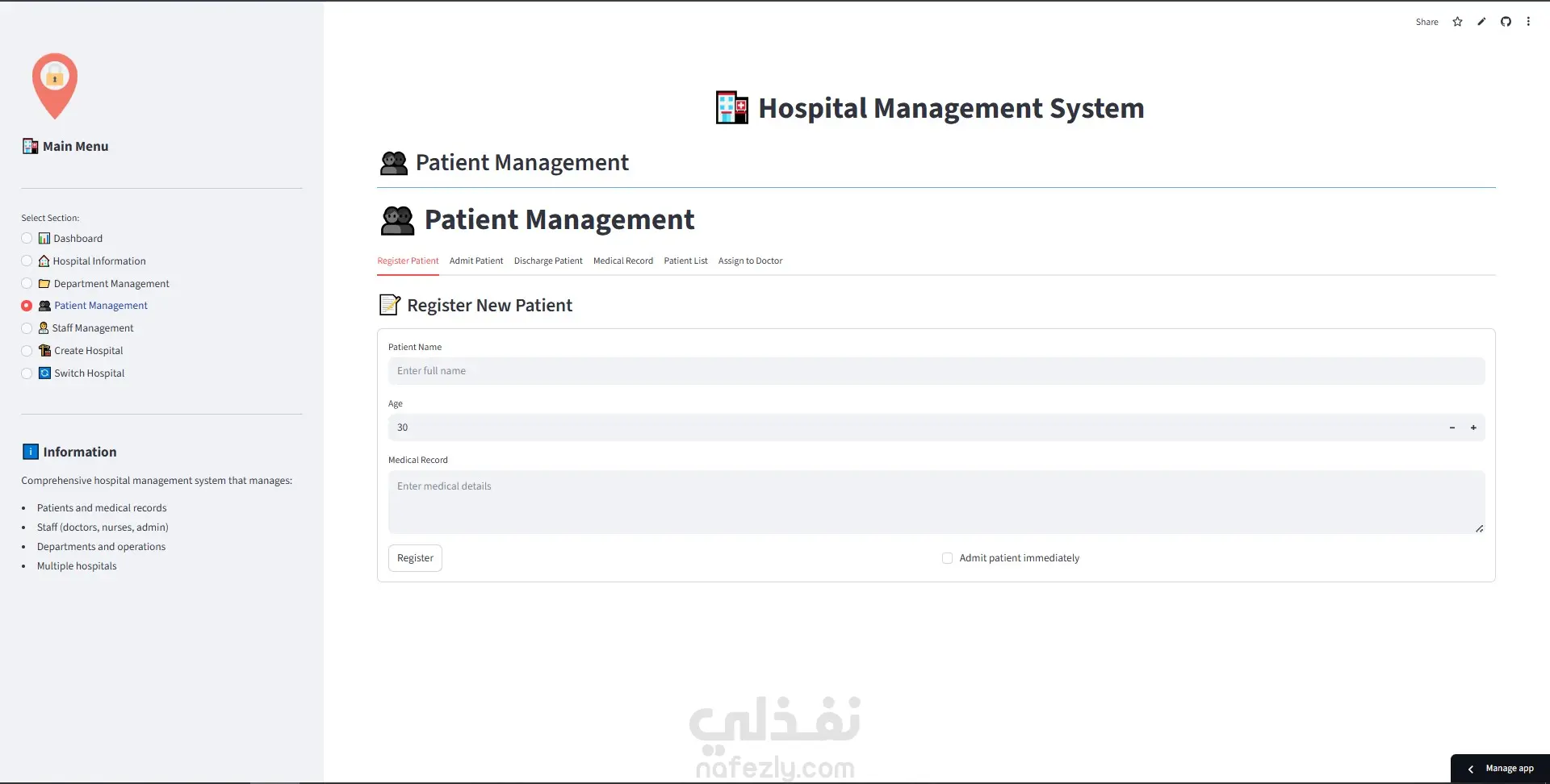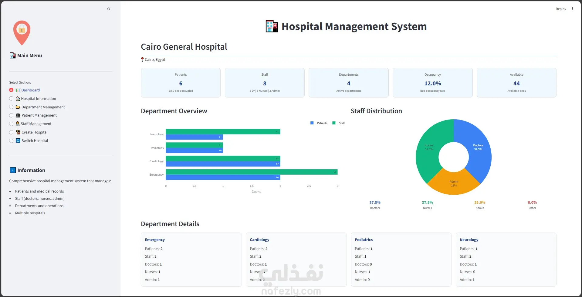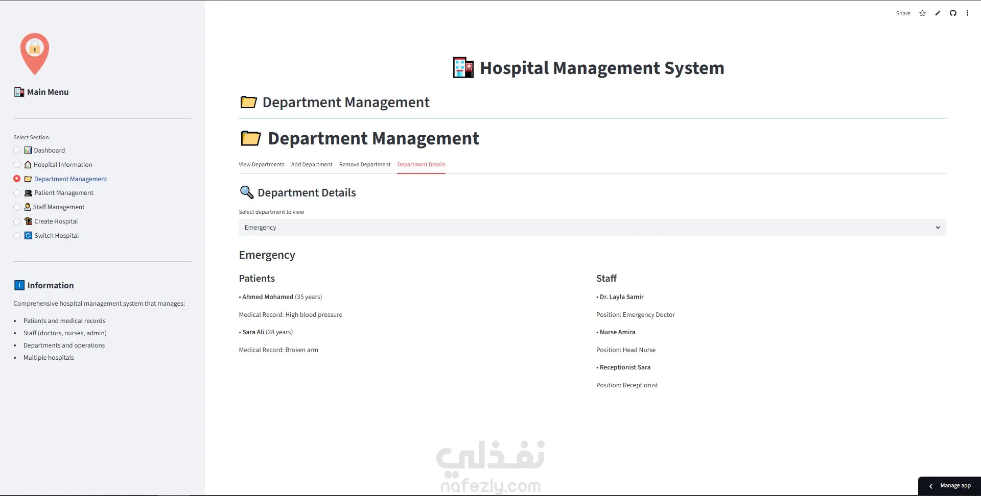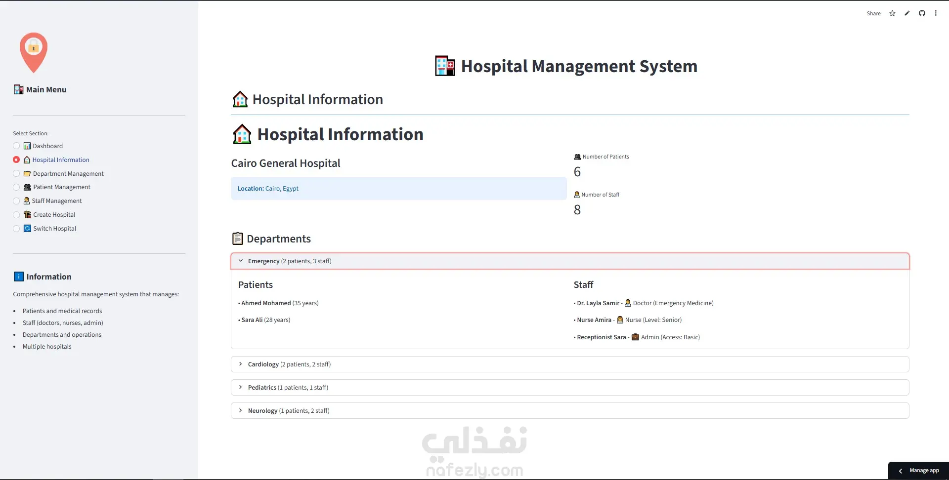 نظام إدارة مستشفى متكامل باستخدام Python و OOP مع لوحة تحكم Streamlit