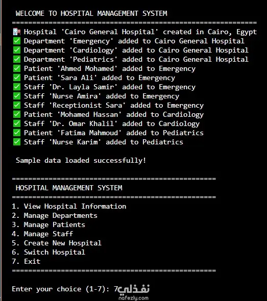 قمت بتصميم وتطوير نظام إدارة مستشفى متكامل (Hospital Management System) يعتمد على مبادئ البرمجة كائنية التوجه (OOP)، ويوفر بنية احترافية قابلة للتوسع والتطوير مستقبلًا. النظام يدعم واجهتين مختلفتين: - واجهة Console للتحكم الكامل واختبار منطق النظام - واجهة Web Dashboard حديثة باستخدام Streamlit مناسبة للعرض العملي والتطبيقات الواقعية - النظام يدير العمليات الأساسية للمستشفيات بشكل منظم ومرن، مع دعم تعدد المستشفيات وإدارة الأدوار المختلفة داخل كل مستشفى. أهم مميزات النظام: - دعم أكثر من مستشفى داخل نفس النظام - إدارة المرضى (تسجيل – دخول – خروج – تحويلات) - إدارة الأقسام الطبية وتتبع الإشغال - إدارة الطاقم الطبي والإداري (أطباء – تمريض – إداريين) - تعيين المرضى للأطباء وتتبع السجلات الطبية - تقارير وإحصائيات تشغيلية - لوحة تحكم تفاعلية باستخدام Streamlit - تصميم معماري نظيف وقابل للتطوير تم تنفيذ المشروع بداية من: - تصميم UML Architecture - بناء الكلاسات والعلاقات باستخدام OOP - فصل منطق العمل عن واجهات المستخدم - تطوير Dashboard احترافية للعرض والتحكم