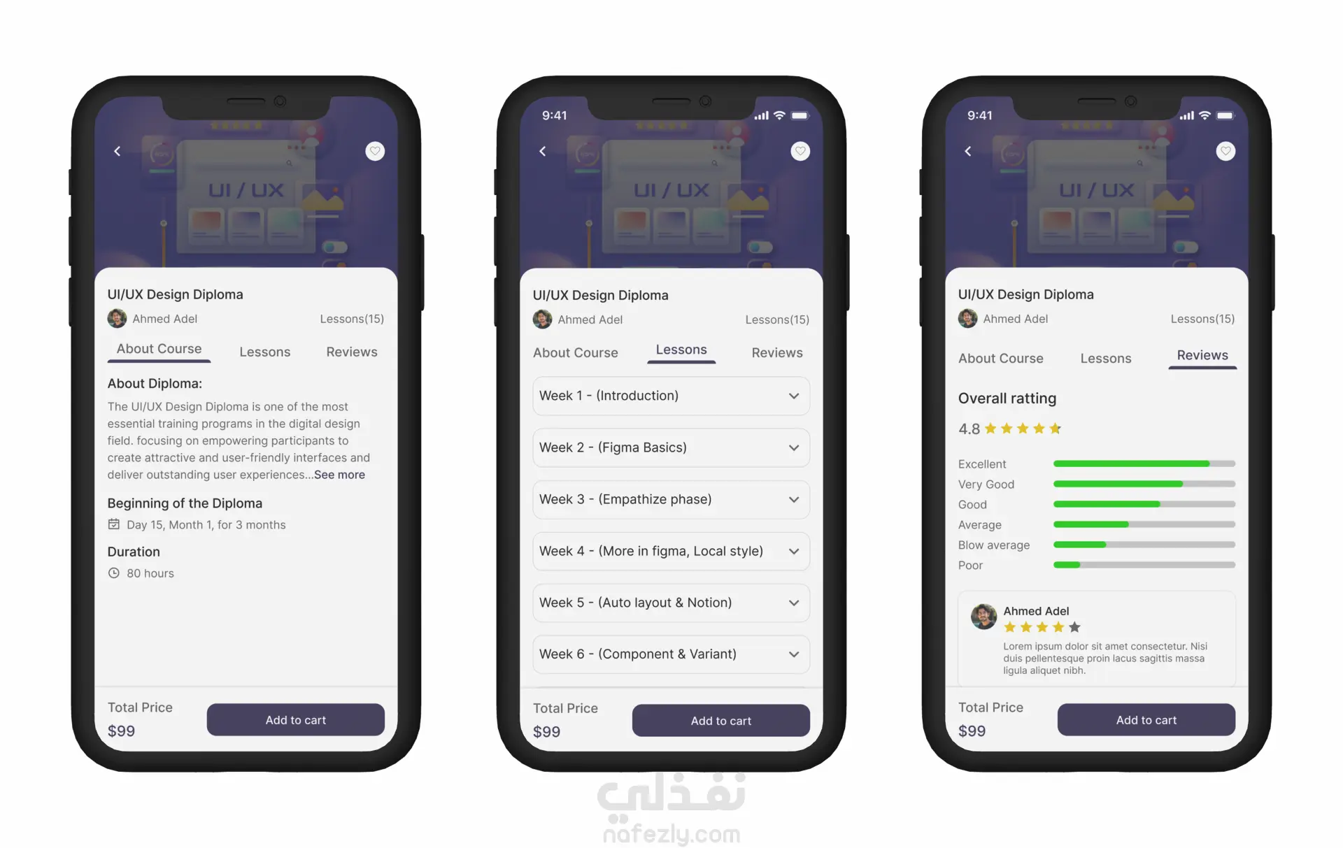 أقدّم لك تصميم UI/UX موبايل عملي، منظّم داخل Figma وجاهز تمامًا للتسليم للمطور—ليس مجرد شكل جميل، بل تصميم يسهل برمجته ويقلل وقت التطوير.