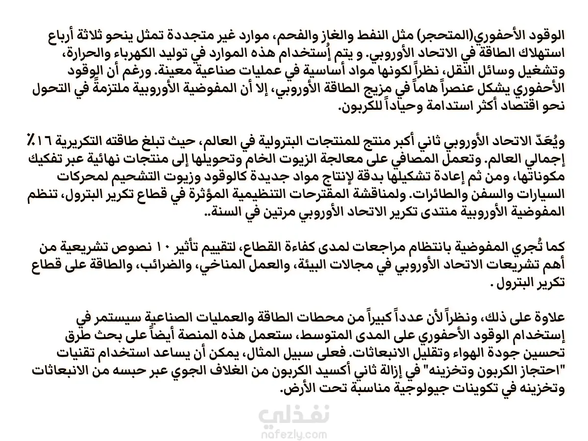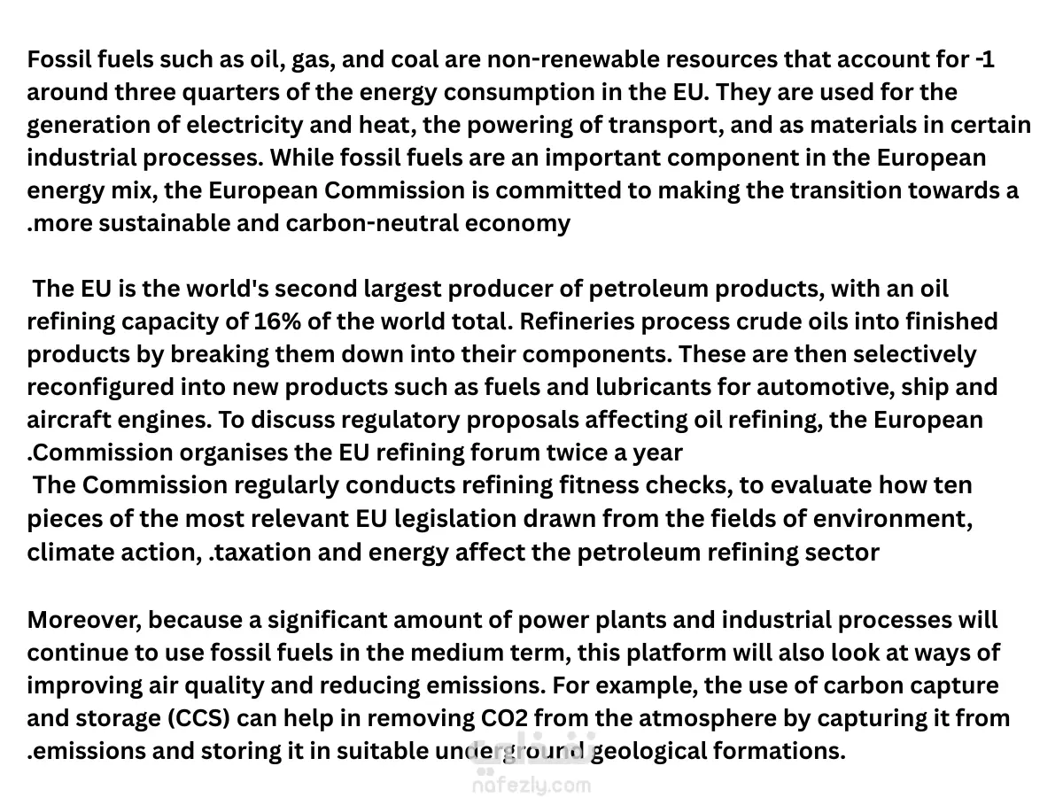 ترجمة وتنسيق مقال علمي متخصص حول "الوقود الأحفوري والطاقة في الاتحاد الأوروبي"