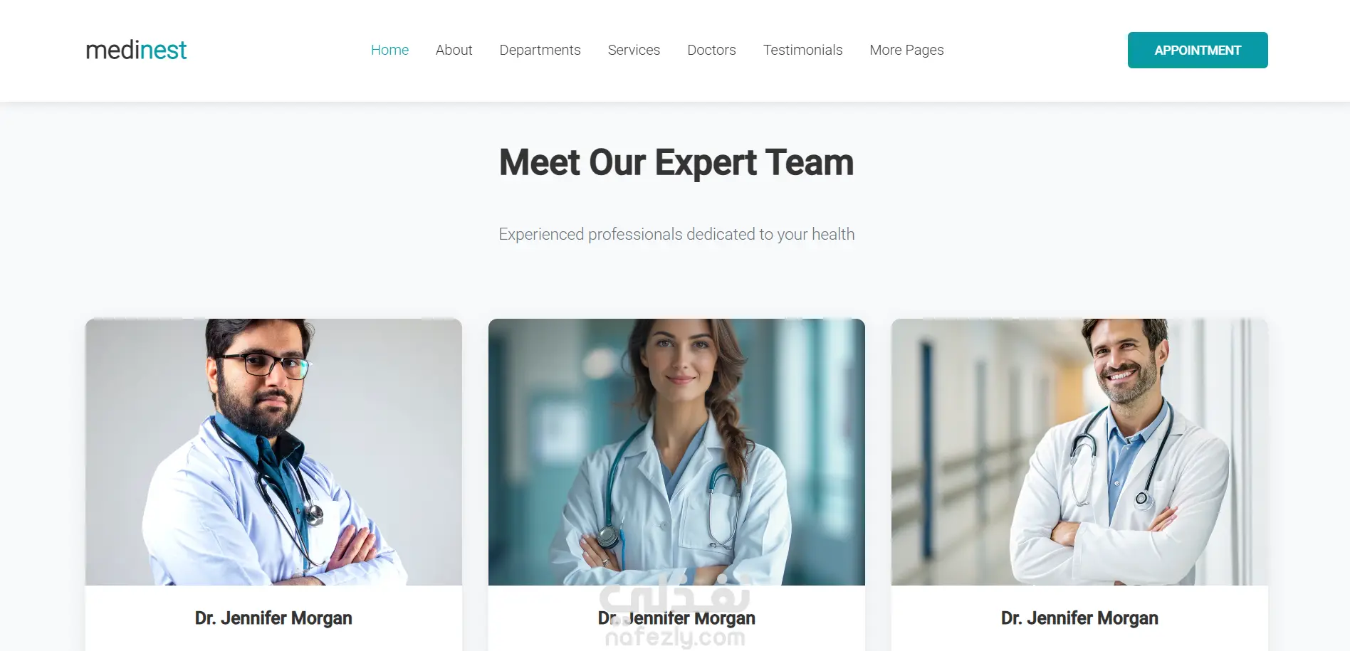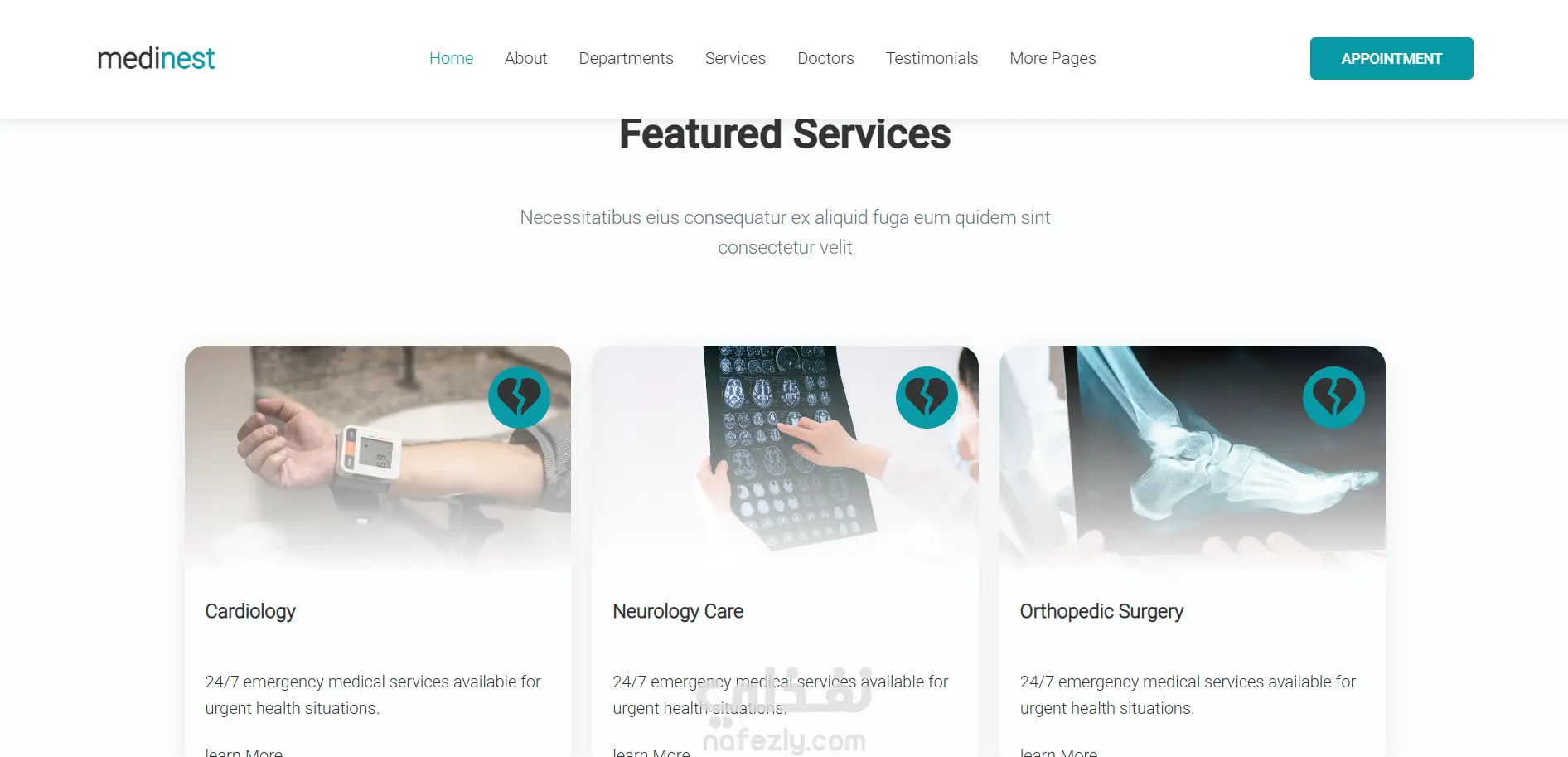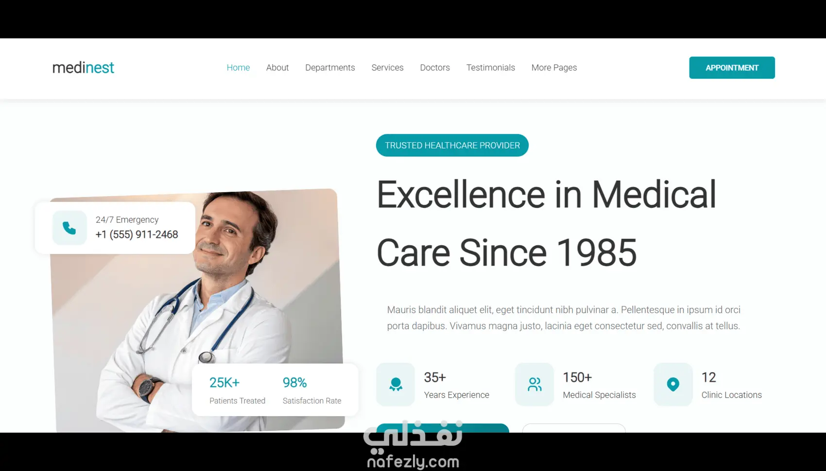 الموقع يتكون من واجهه اماميه لاداره حجز الاطباء او التواصل معهم مباشره و يتميز الموقع بالسهوله و السلاسه و العمل بكفائه على جميع الشاشات مع بساطه التصميم