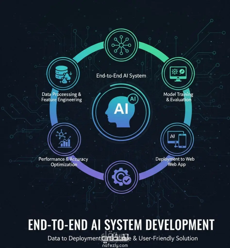 قمت بتصميم وتنفيذ حل ذكاء اصطناعي متكامل يبدأ من تحليل البيانات ومعالجتها، مرورًا ببناء وتدريب نموذج Machine Learning / Deep Learning، وصولًا إلى نشره داخل تطبيق عملي قابل للاستخدام.
