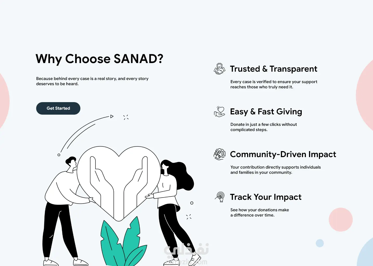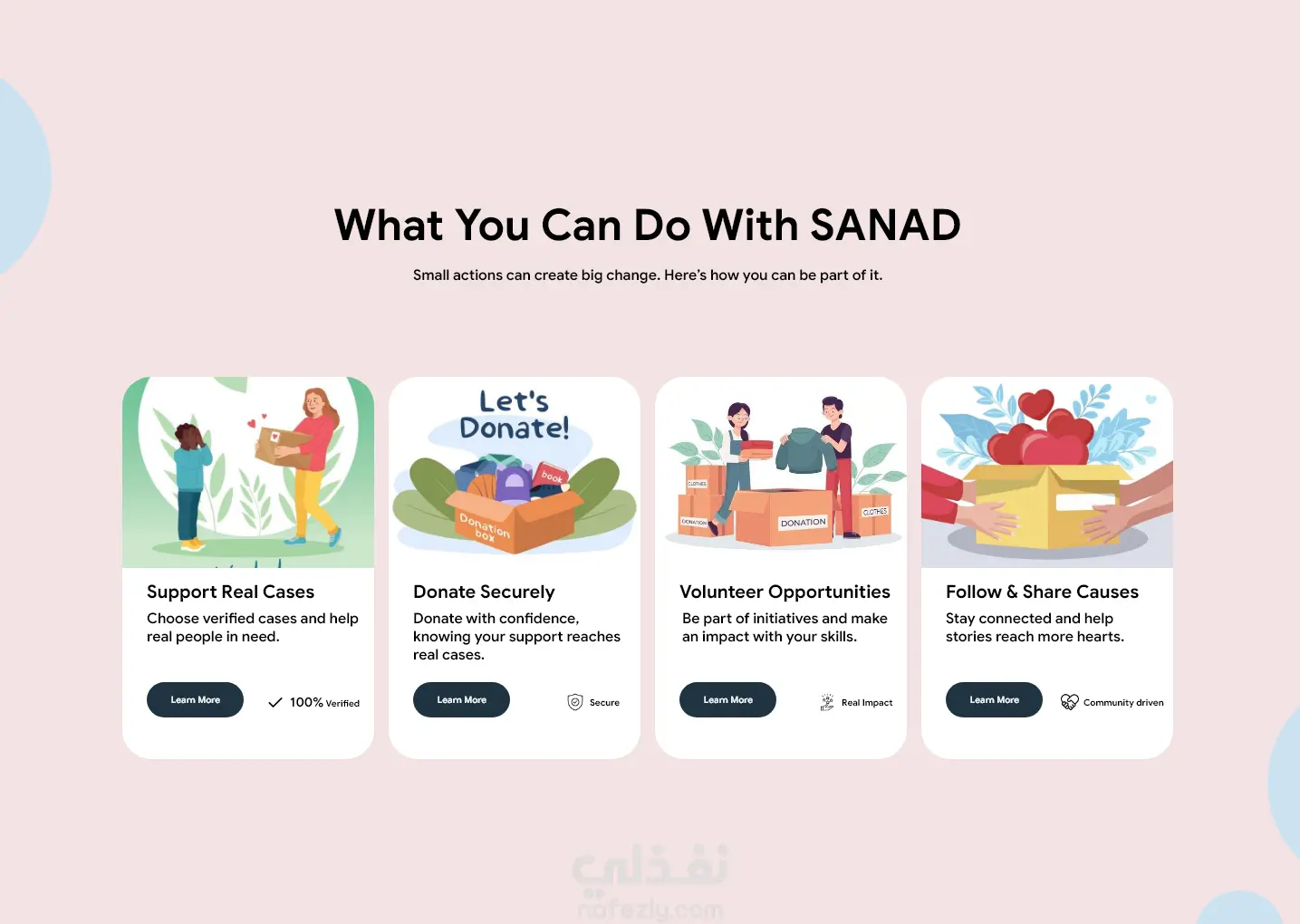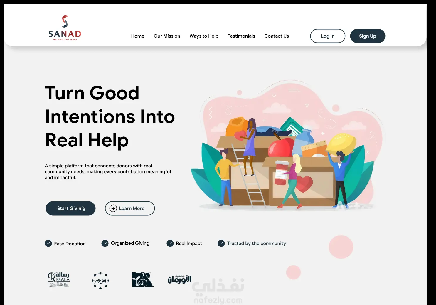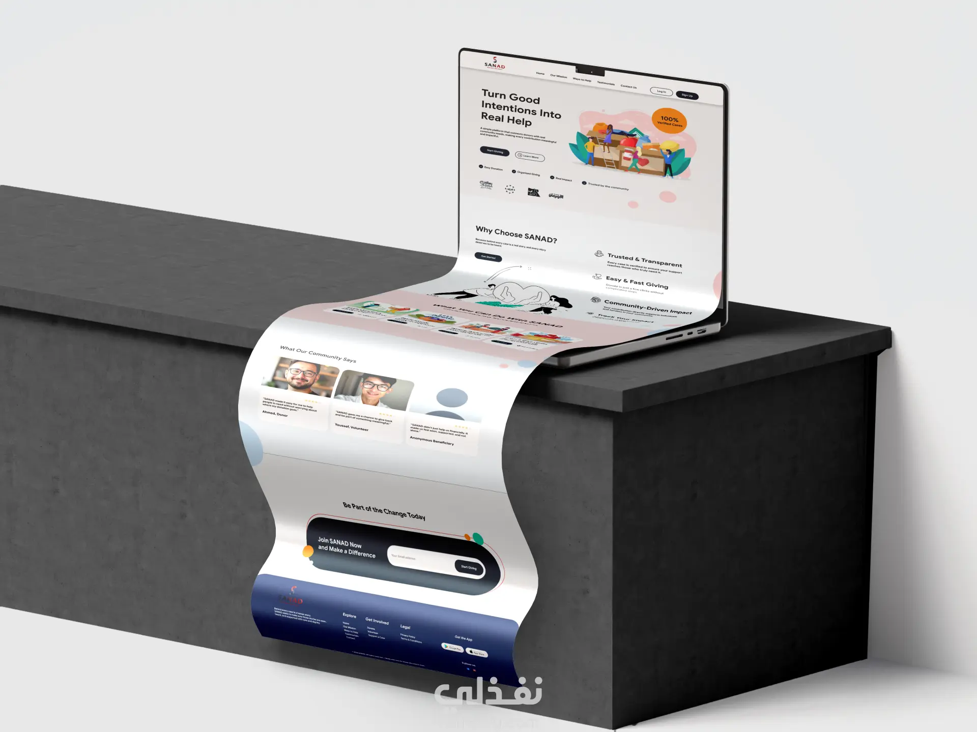 تصميم واجهة مستخدم (UI) عصرية لمنصة "سند" تهدف إلى تحويل "النوايا الطيبة إلى مساعدة حقيقية" من خلال تجربة مستخدم (UX) سلسة وجذابة.