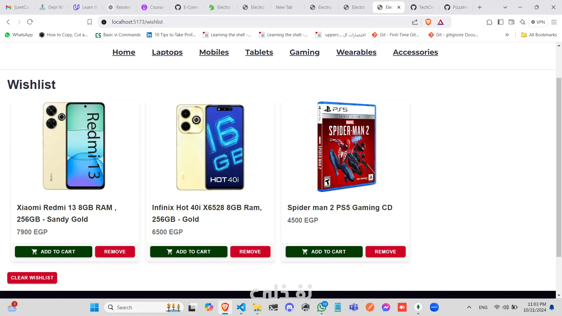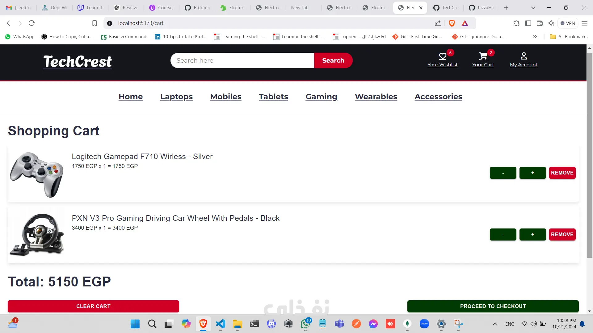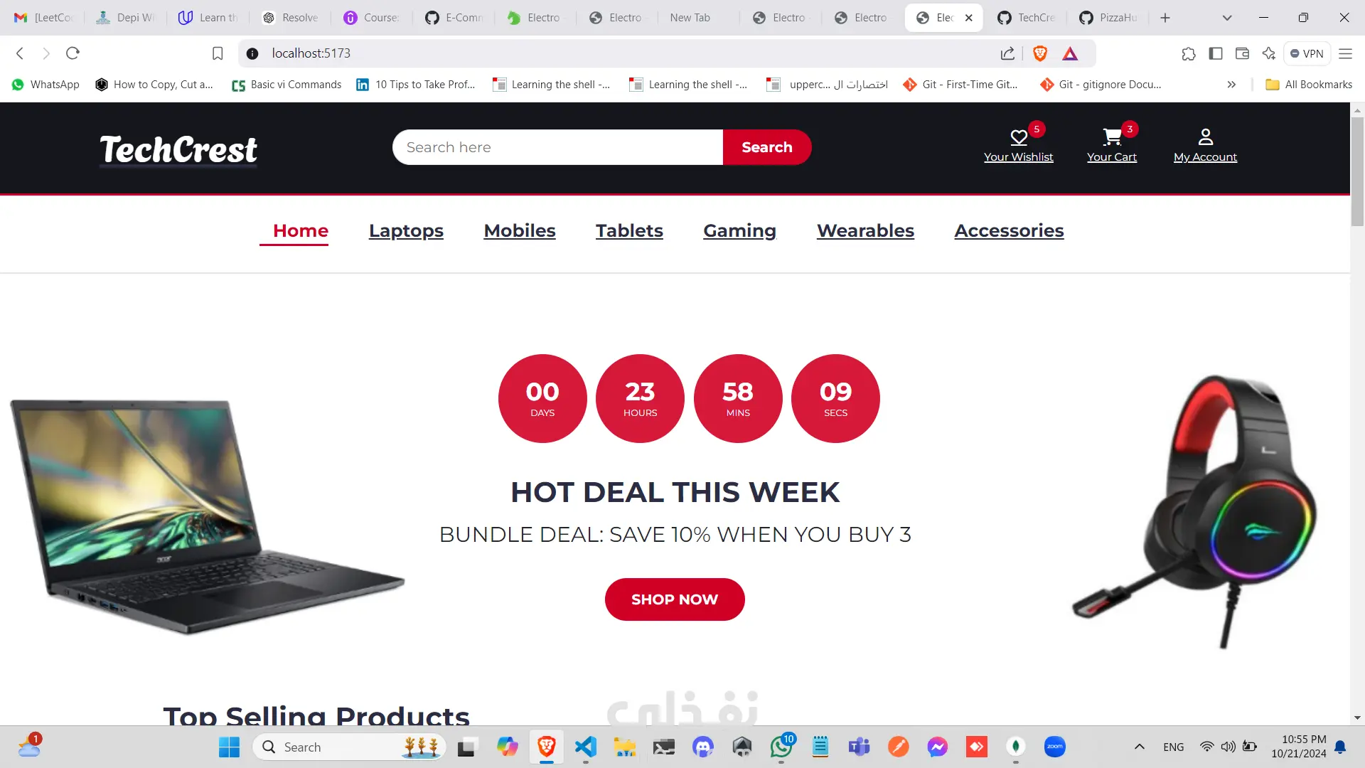 تطبيق تجارة إلكترونية متكامل للأجهزة الإلكترونية يعتمد على تقنيات MERN (MongoDB, Express, React, Node.js). يعد هذا المشروع جمع بين كفاءة الواجهة الخلفية وسلاسة واجهة المستخدم. التقنيات المستخدمة: الواجهة الخلفية (Backend): استخدمت JavaScript وExpress لبناء قاعدة بيانات قوية وقابلة للتوسع، مع اعتماد MongoDB كقاعدة بيانات عالية الكفاءة. الواجهة الأمامية (Frontend): استخدمت React لخلق واجهة مستخدم جذابة ومتجاوبة، وأضفت Bootstrap للحصول على تصميم حديث ونظيف. أهم المميزات: تسجيل الدخول والتسجيل: يتمكن المستخدمون من إنشاء حسابات جديدة وتسجيل الدخول للوصول إلى عرباتهم وطلبات الشراء الخاصة بهم، مع حماية كاملة للمسارات. سهولة البحث: يقدم التطبيق تجربة بحث مرنة وسهلة، مع تخصيص صفحة مستقلة لعرض تفاصيل كل منتج على حدة. تخصيص الطلبات: يوفر التطبيق للمستخدمين القدرة على اختيار المنتجات وتحديد الكمية المطلوبة وإضافتها إلى سلة التسوق. قائمة الرغبات: يمكن للمستخدمين حفظ المنتجات المفضلة في قائمة الرغبات لاستخدامها لاحقًا، مثل إضافتها إلى السلة. عملية الدفع السلسة: بعد تأكيد الطلب، يتم توجيه المستخدمين إلى لوحة التحكم لإدخال بياناتهم الشخصية (الاسم، ورقم الهاتف، وعنوان التوصيل) وتحديد طريقة الدفع المناسبة لهم