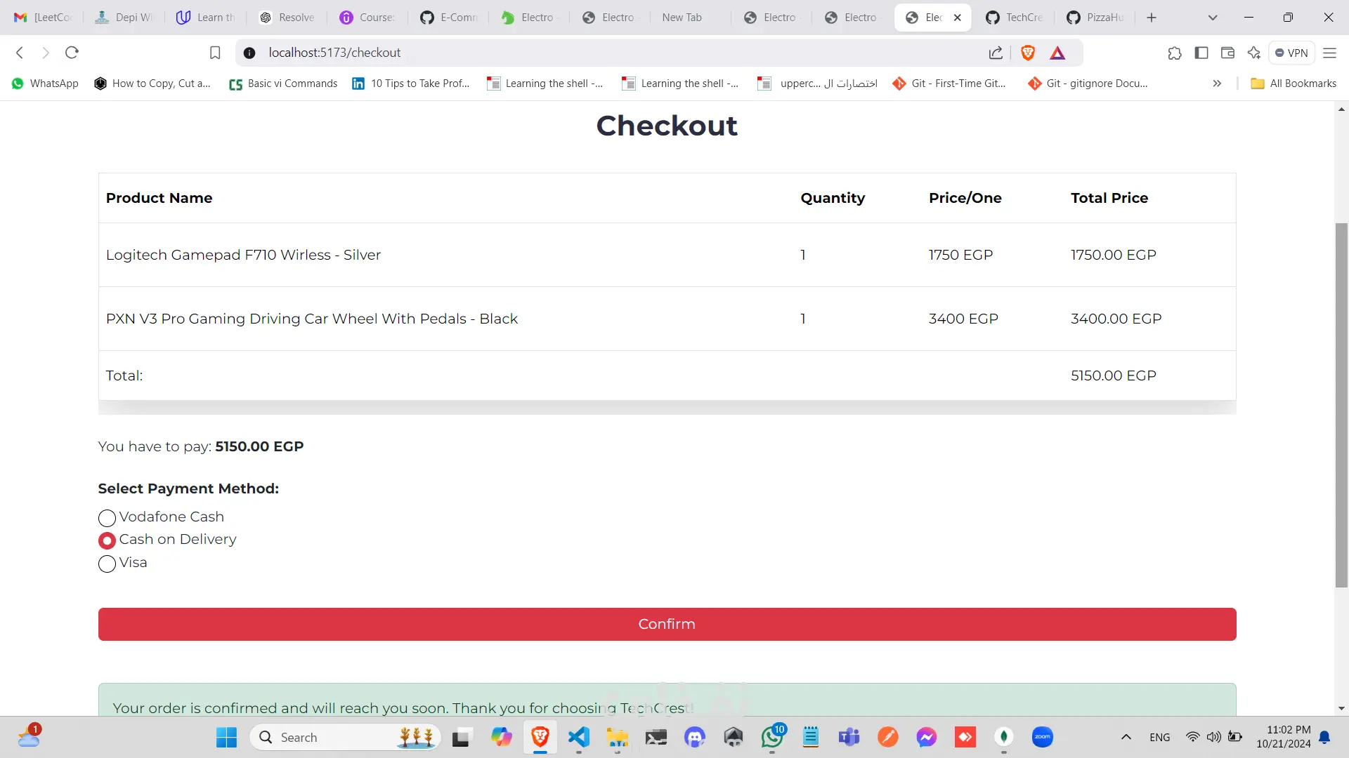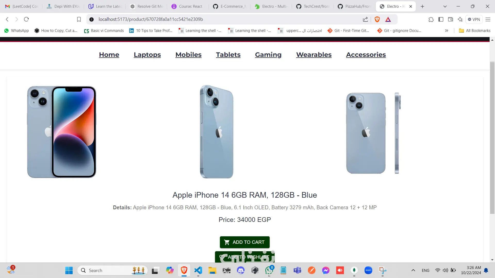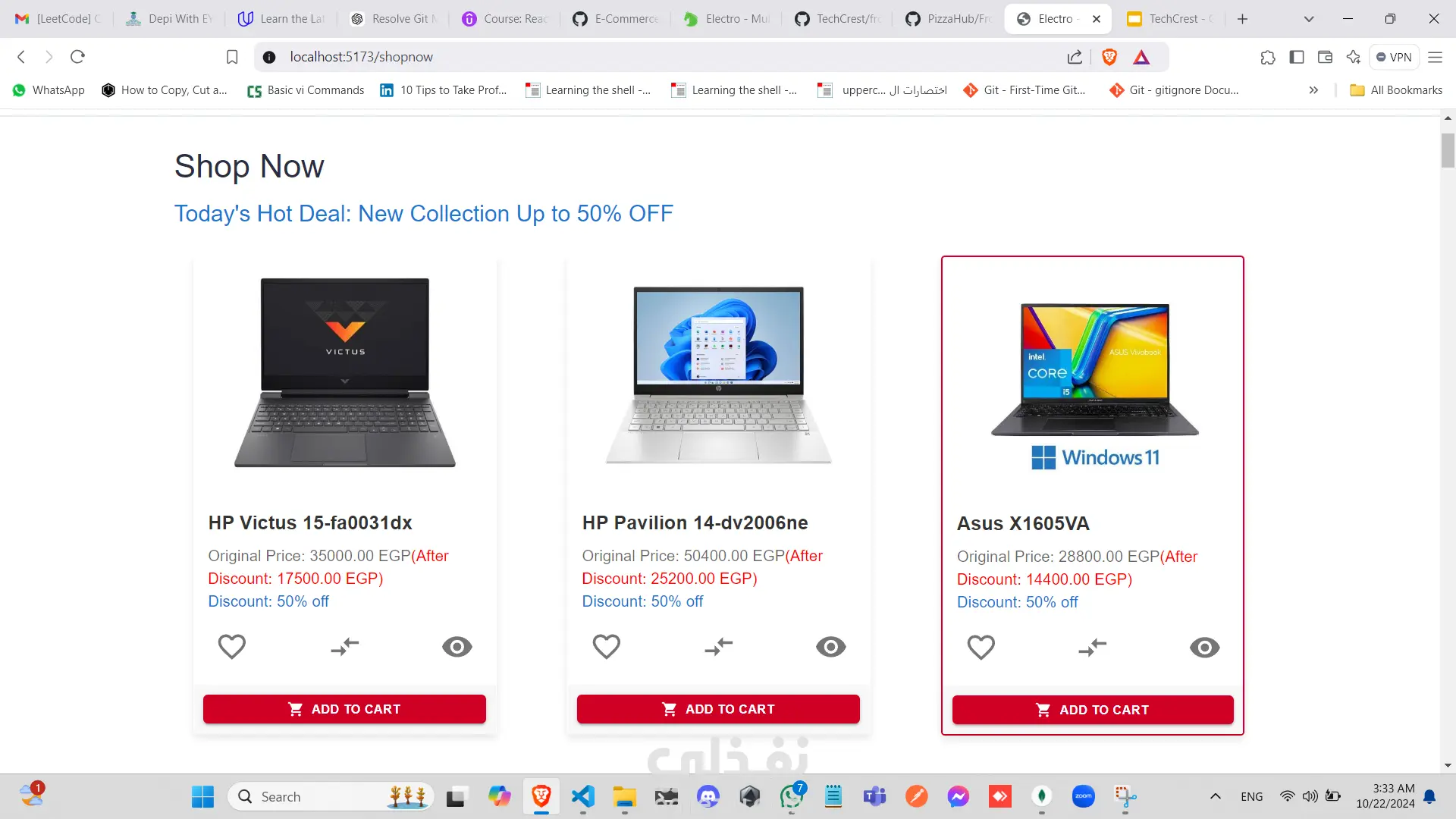 تطبيق تجارة إلكترونية متكامل للأجهزة الإلكترونية يعتمد على تقنيات MERN (MongoDB, Express, React, Node.js). يعد هذا المشروع جمع بين كفاءة الواجهة الخلفية وسلاسة واجهة المستخدم. التقنيات المستخدمة: الواجهة الخلفية (Backend): استخدمت JavaScript وExpress لبناء قاعدة بيانات قوية وقابلة للتوسع، مع اعتماد MongoDB كقاعدة بيانات عالية الكفاءة. الواجهة الأمامية (Frontend): استخدمت React لخلق واجهة مستخدم جذابة ومتجاوبة، وأضفت Bootstrap للحصول على تصميم حديث ونظيف. أهم المميزات: تسجيل الدخول والتسجيل: يتمكن المستخدمون من إنشاء حسابات جديدة وتسجيل الدخول للوصول إلى عرباتهم وطلبات الشراء الخاصة بهم، مع حماية كاملة للمسارات. سهولة البحث: يقدم التطبيق تجربة بحث مرنة وسهلة، مع تخصيص صفحة مستقلة لعرض تفاصيل كل منتج على حدة. تخصيص الطلبات: يوفر التطبيق للمستخدمين القدرة على اختيار المنتجات وتحديد الكمية المطلوبة وإضافتها إلى سلة التسوق. قائمة الرغبات: يمكن للمستخدمين حفظ المنتجات المفضلة في قائمة الرغبات لاستخدامها لاحقًا، مثل إضافتها إلى السلة. عملية الدفع السلسة: بعد تأكيد الطلب، يتم توجيه المستخدمين إلى لوحة التحكم لإدخال بياناتهم الشخصية (الاسم، ورقم الهاتف، وعنوان التوصيل) وتحديد طريقة الدفع المناسبة لهم