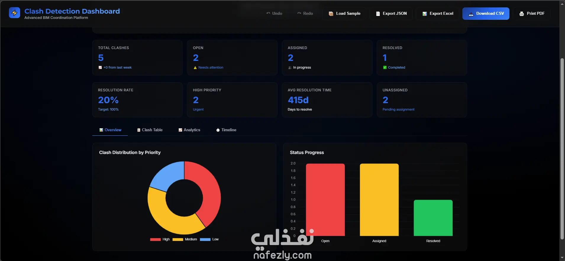 تطوير لوحة تحكم تفاعلية لتحليل Clash Detection في مشاريع BIM