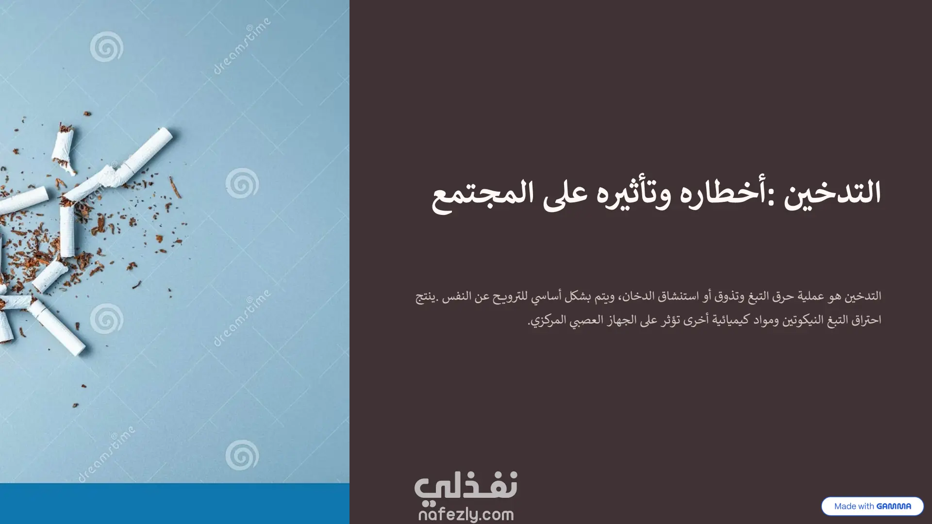 تصميم عرض تقديمي توعوي: "التدخين وأخطاره على المجتمع"