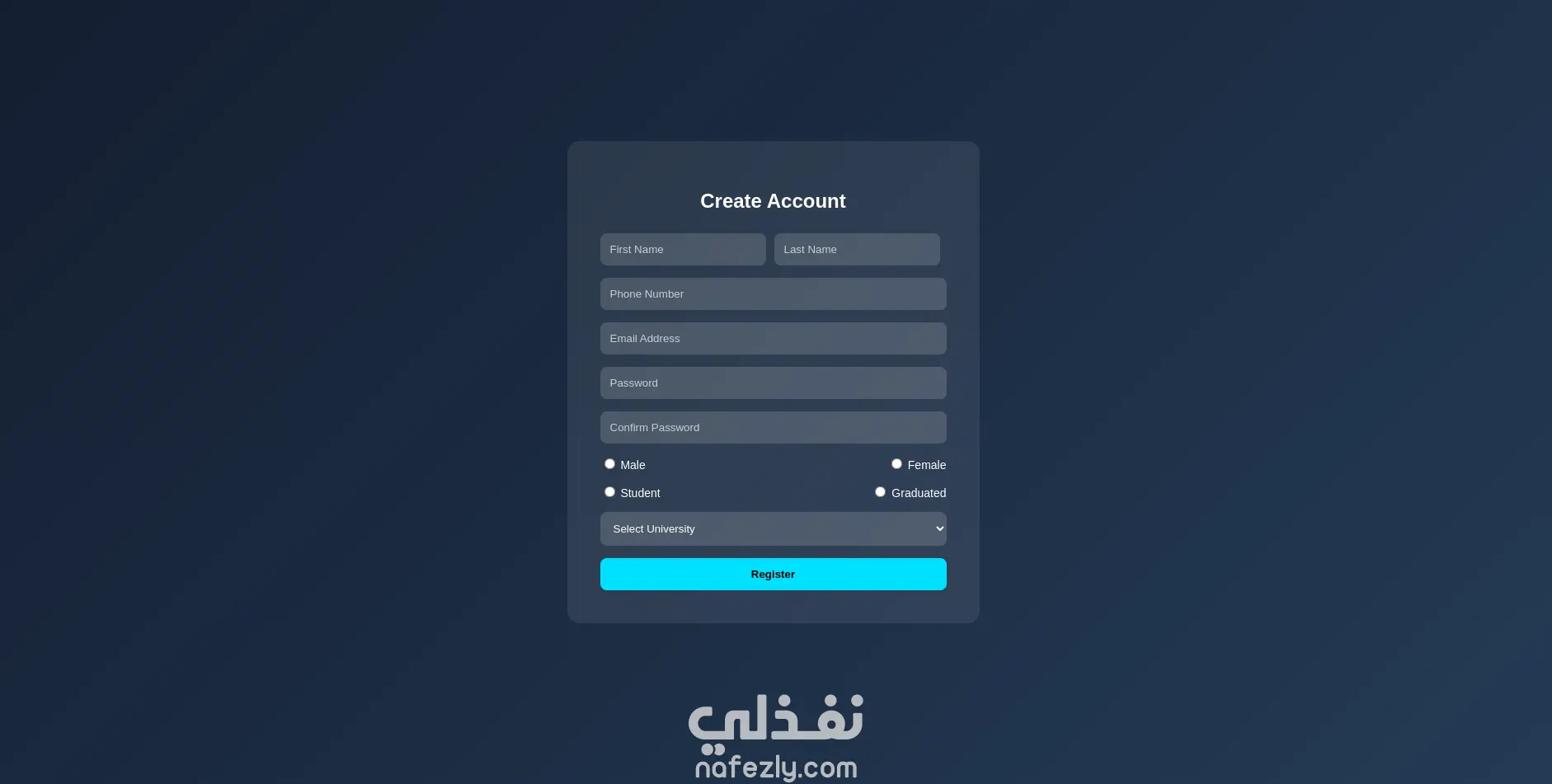 قمت بتصميم وتطوير واجهة تسجيل حساب حديثة باستخدام تقنيات HTML وCSS مع تصميم عصري يركز على تجربة المستخدم وسهولة الاستخدام. تحتوي الصفحة على نموذج تسجيل متكامل يشمل: إدخال الاسم الأول واسم العائلة رقم الهاتف البريد الإلكتروني كلمة المرور وتأكيدها اختيار النوع (ذكر / أنثى) تحديد الحالة (طالب أو خريج) اختيار الجامعة تم تصميم الواجهة بأسلوب Modern UI مع ألوان متناسقة وتنسيق احترافي للنموذج، كما تم الاهتمام بمحاذاة العناصر وتوفير تجربة استخدام واضحة وسلسة. المشروع مناسب لصفحات التسجيل في المواقع أو الأنظمة التعليمية والتطبيقات المختلفة.