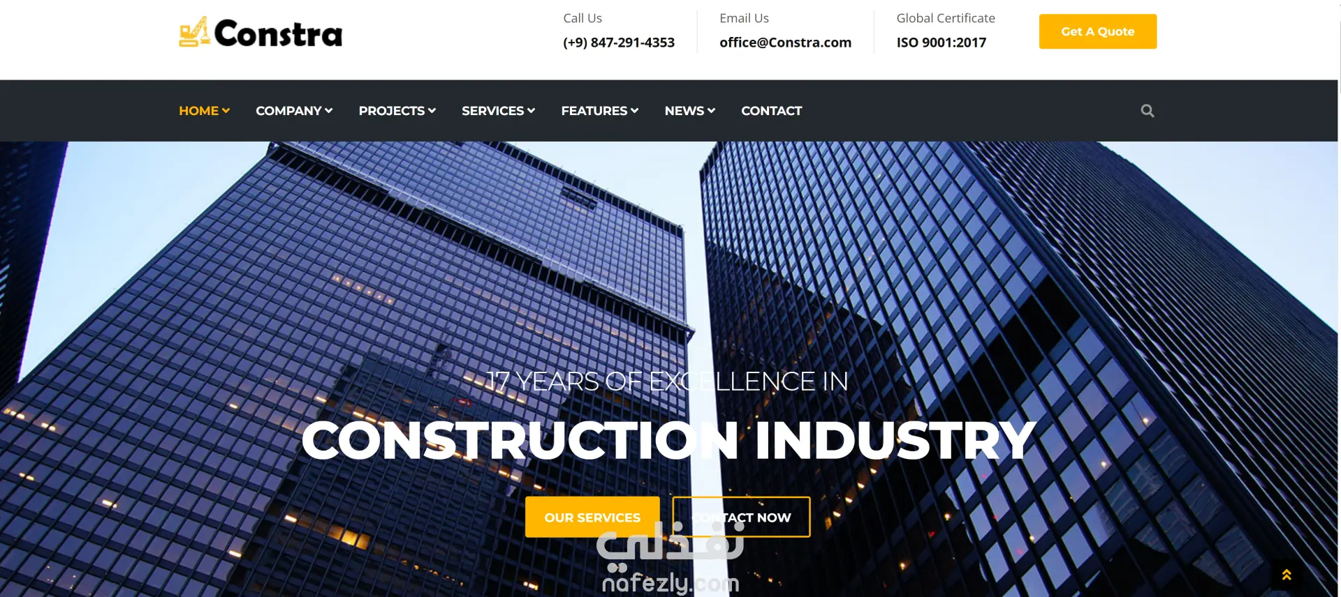 موقع CONSTRA للأنشاء وتطوير المنشأت وتم عمله ب HTML و CSS