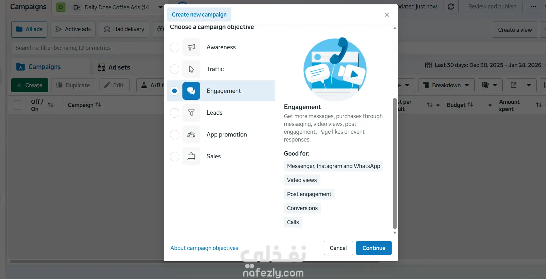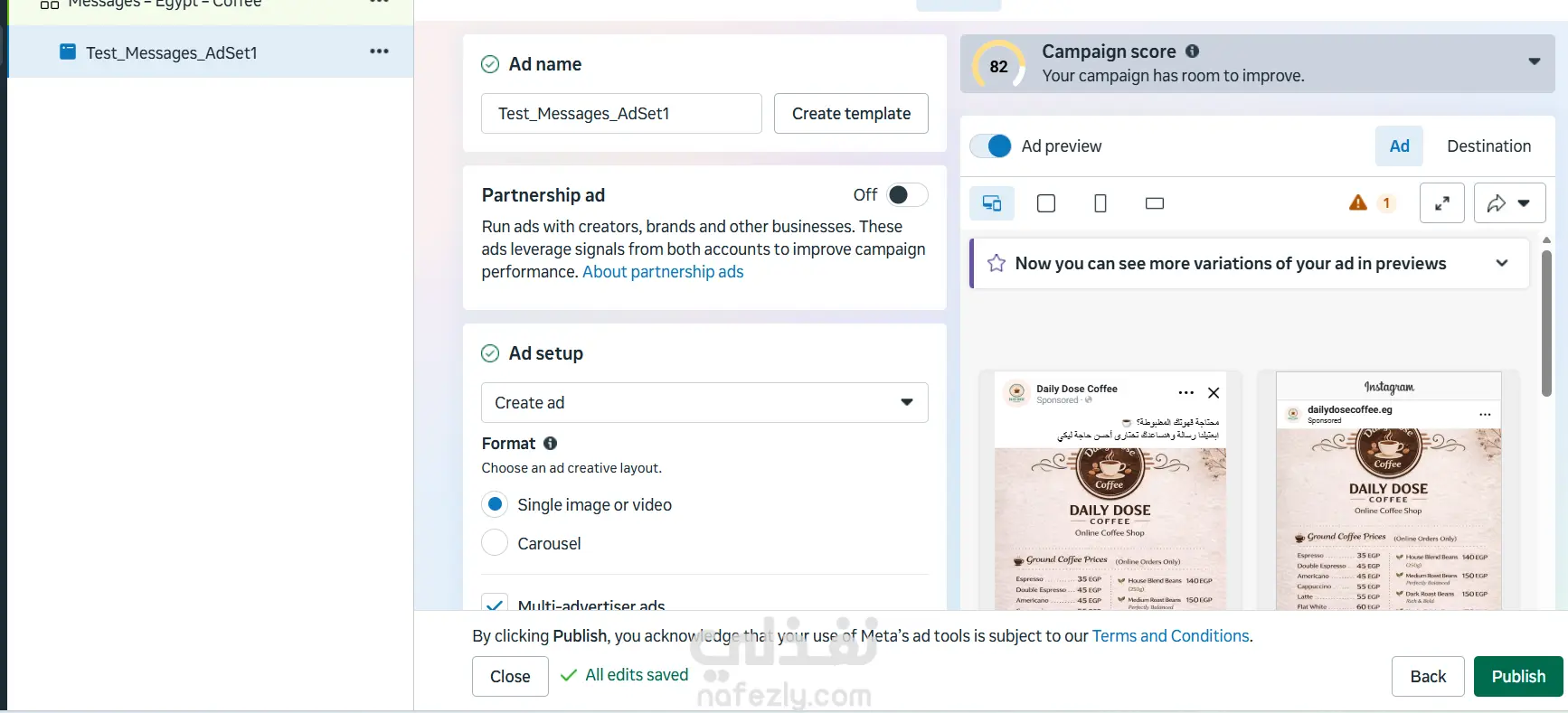 نموذج إعداد حملة إعلانية لكافيه أونلاين على فيسبوك وإنستجرام