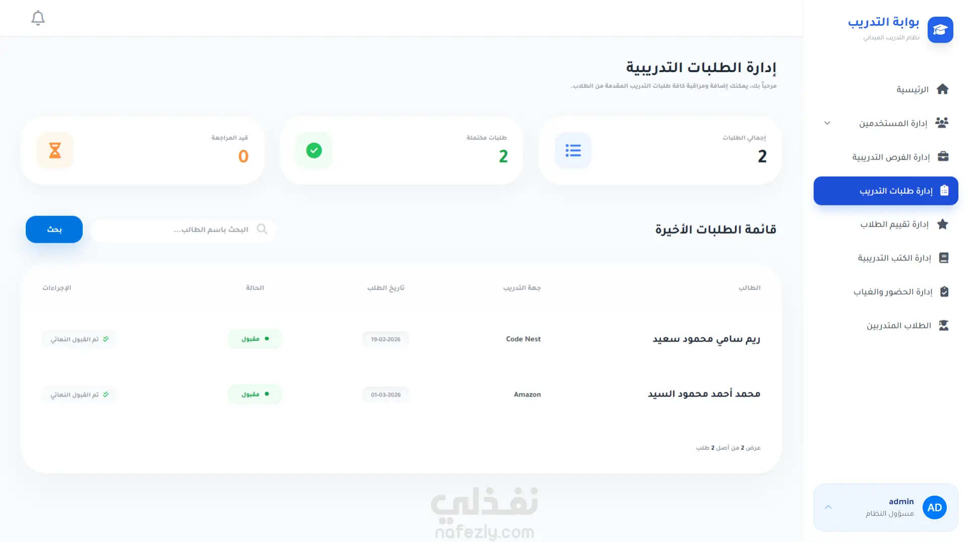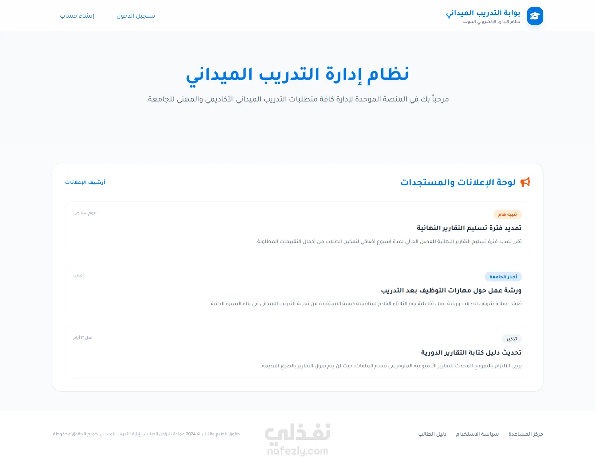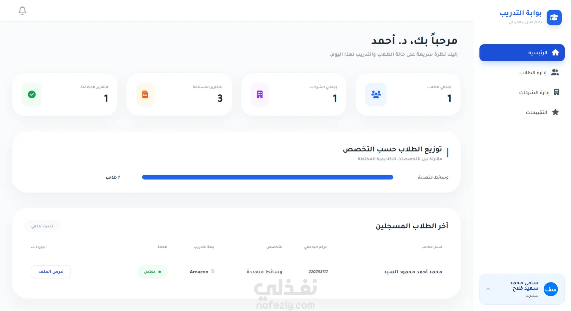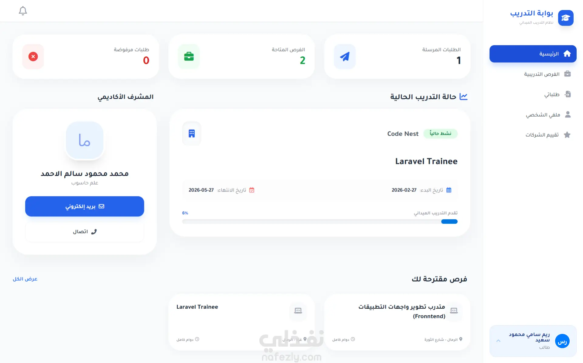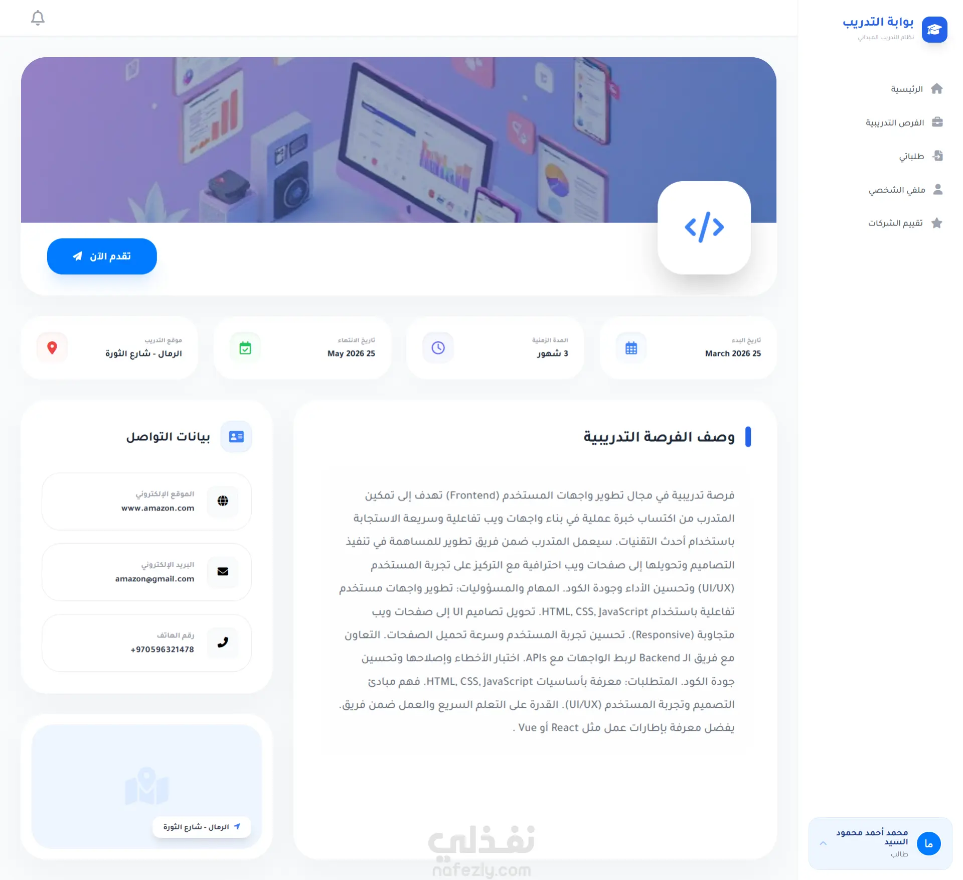 تطبيق ويب متكامل تم تطويره لمساعدة طلاب تكنولوجيا المعلومات في العثور على فرص التدريب الميداني والتقدم إليها، مع تمكين الشركات والمشرفين الأكاديميين من إدارة عملية التدريب وتتبعها بكفاءة.