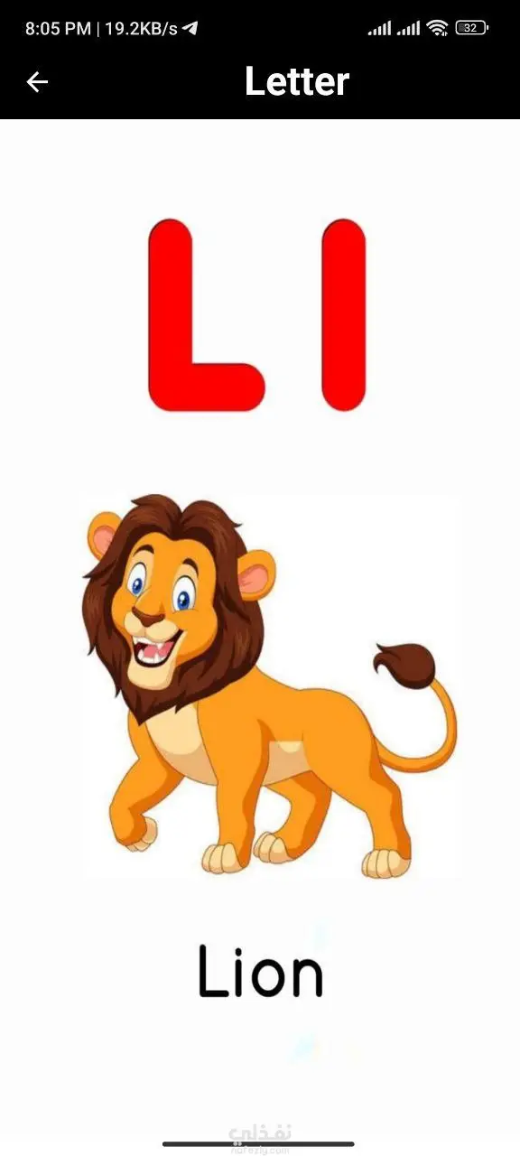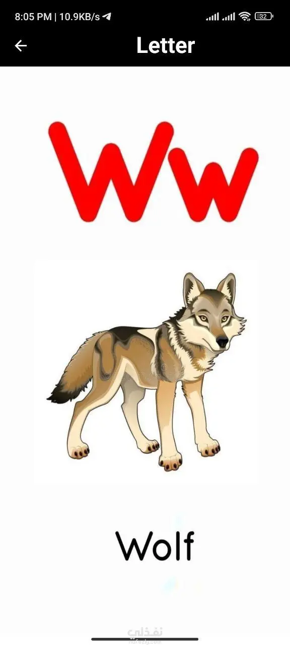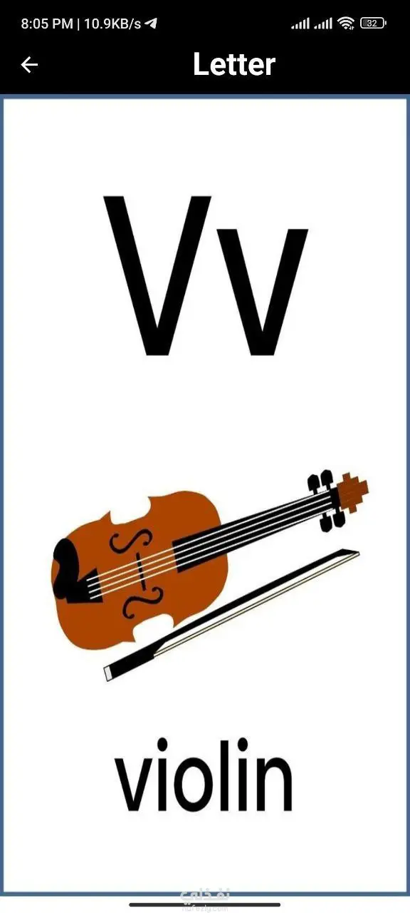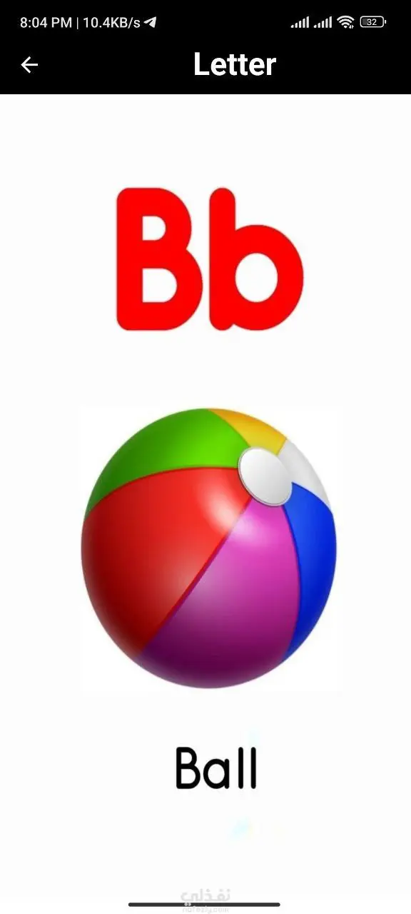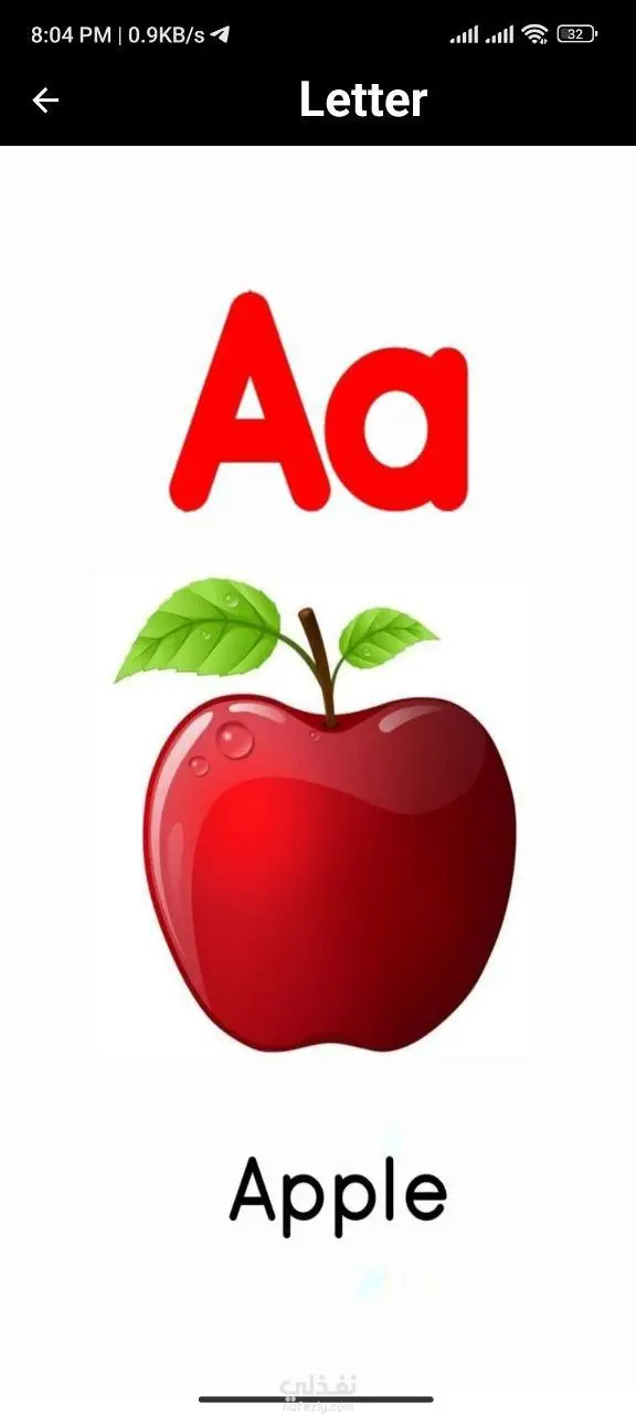 بناء صفحة خاصة بكل حرف تعرض الحرف الكبير والصغير (Uppercase & Lowercase) مع صورة توضيحية وكلمة مرتبطة بالحرف (مثل: A – Apple).