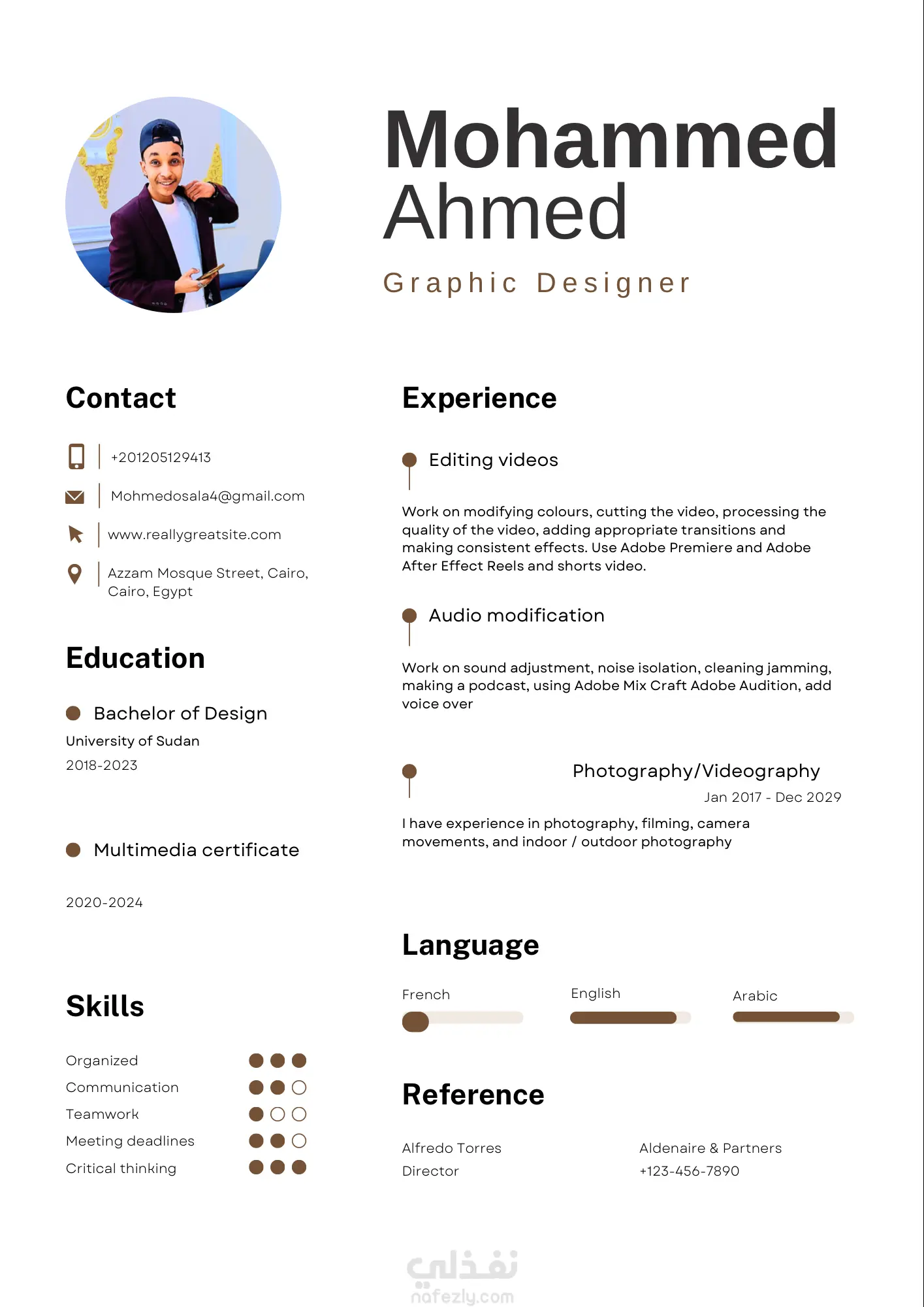 - *الاسم*: - اكتب اسمك كاملًا. - *العنوان*: - اكتب عنوانك البريدي. - اكتب رقم هاتفك. - اكتب بريدك الإلكتروني. - *الملخص*: - اكتب ملخص قصير عن نفسك (2-3 جمل). - اكتب مهاراتك الرئيسية. - *الخبرة*: - اكتب خبراتك السابقة (لو عندك). - اكتب الوظائف السابقة والمهام التي قمت بها. - *التعليم*: - اكتب شهاداتك الجامعية (لو عندك). - اكتب الدورات التدريبية التي أخذتها. - *المهارات*: - اكتب مهاراتك الفنية (مثل البرمجة، التصميم، ...). - اكتب مهاراتك اللغوية (مثل الإنجليزية، الفرنسية، ...). - *المشاريع*: - اكتب المشاريع التي عملتها (لو عندك). - اكتب تفاصيل عن المشاريع والمهام التي قمت بها. - *المراجع*: - اكتب مراجعك (لو عندك). *نصائح*: - *اجعل CV مختصرًا*: - حاول تجعل CV في صفحة واحدة. - اكتب المعلومات المهمة فقط. - *استخدم لغة قوية*: - استخدم لغة قوية وجذابة. - تجنب الأخطاء الإملائية والنحوية. - *استخدم تنسيق جيد*: - استخدم تنسيق جيد ومرتب. - استخدم عناوين واضحة. *لو محتاج مساعدة أو استفسار، قوللي 😊.*