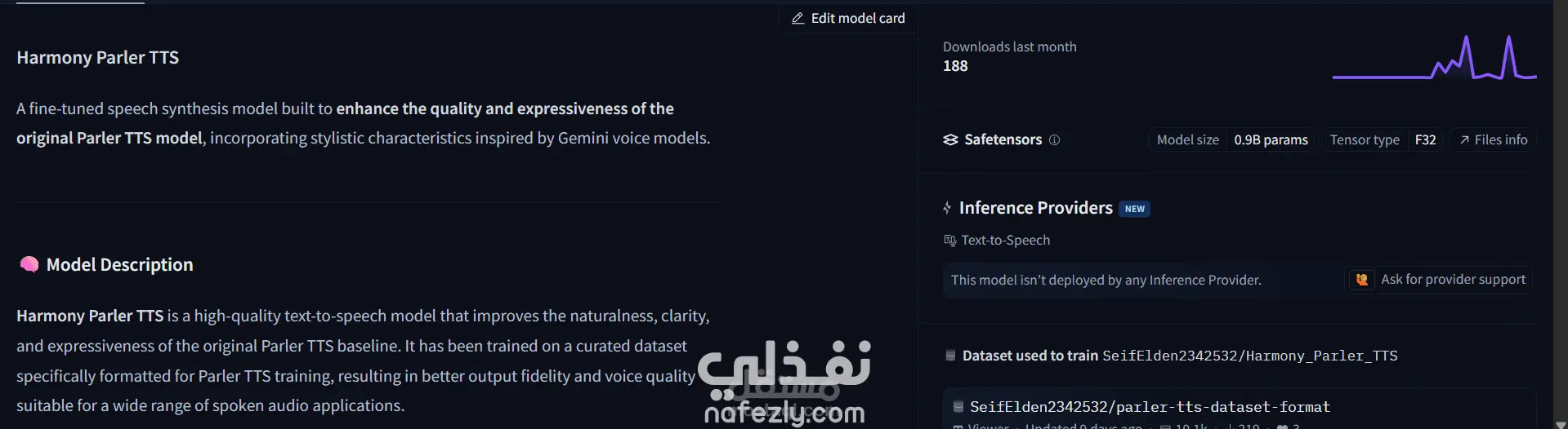 قمت بتدريب نموذج Parler-TTS باستخدام بيانات مولدة من Gemini لإنشاء بصمة صوتية فريدة وعالية الجودة. تم التنفيذ باستخدام سرعات معالجة فائقة عبر NVIDIA H100