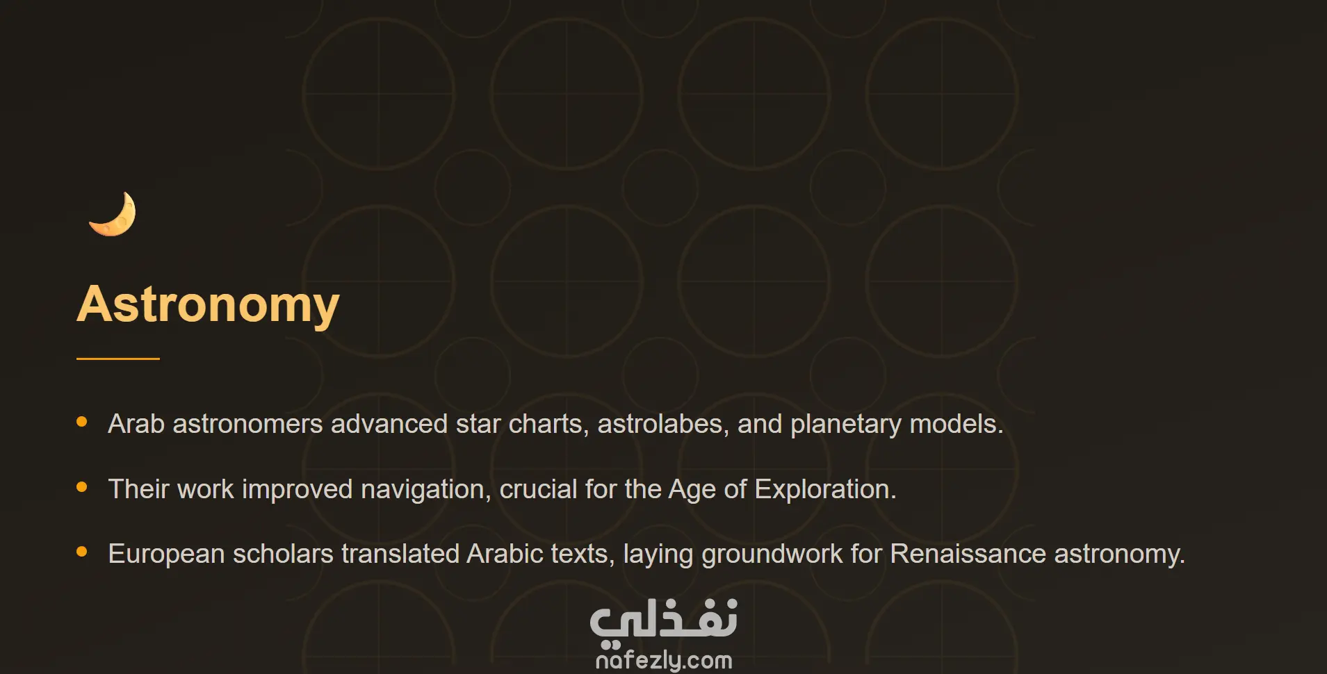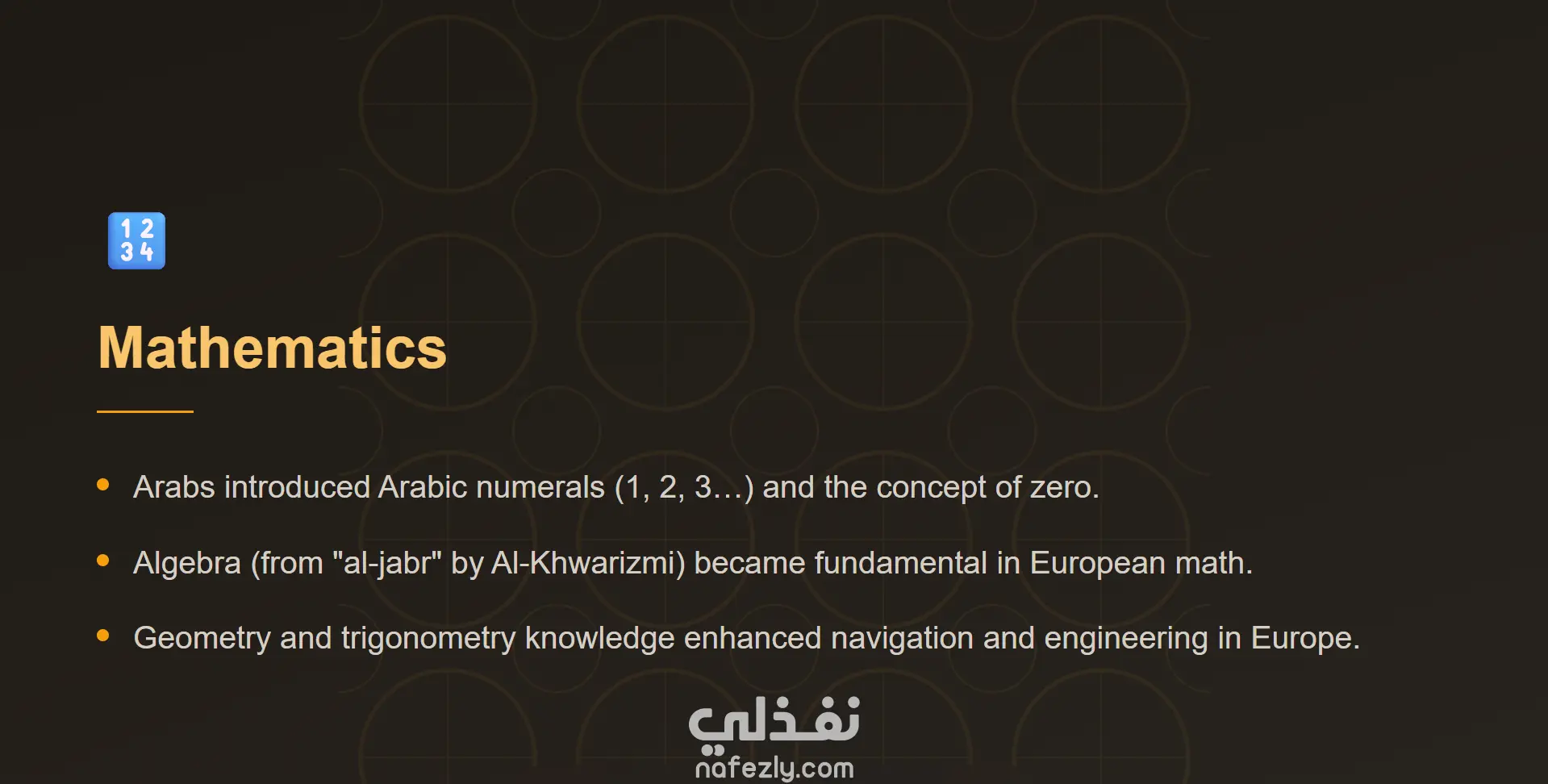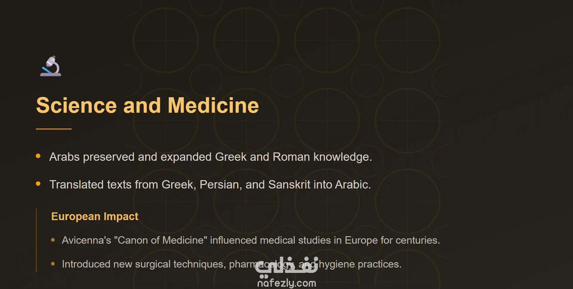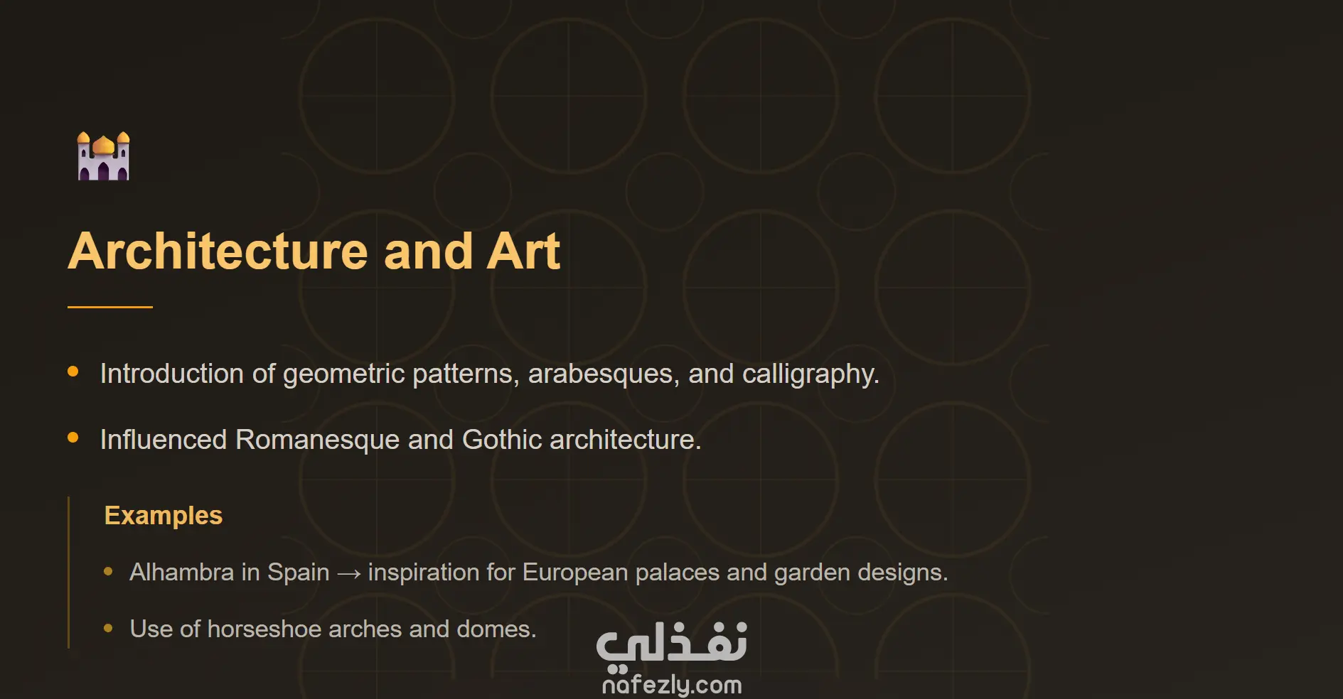 تصميم عرض تقديمي احترافي عن تأثير الثقافة العربية على أوروبا
