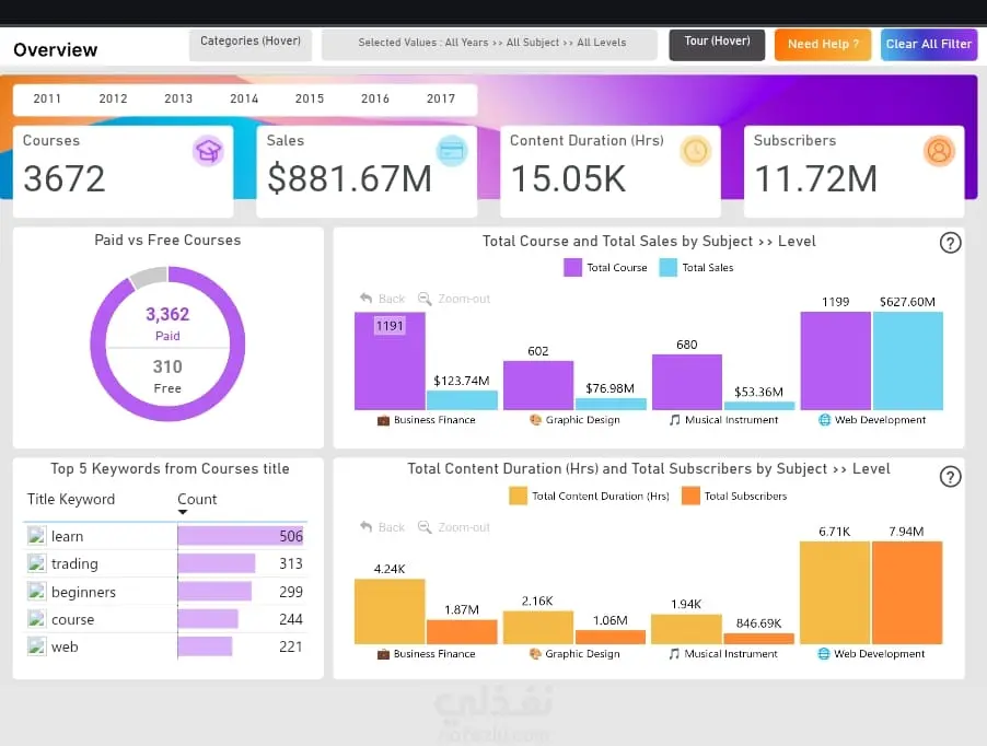 التفاعل (Interactivity): تفعيل خاصية الـ Drill-up/down للتنقل بين المستويات الزمنية المختلفة (سنوات، شهور) بضغطة واحد كل هذا فقط بسعر 20 دولار.